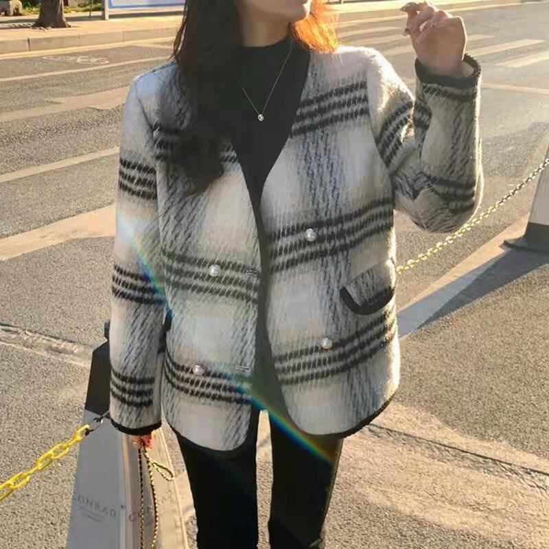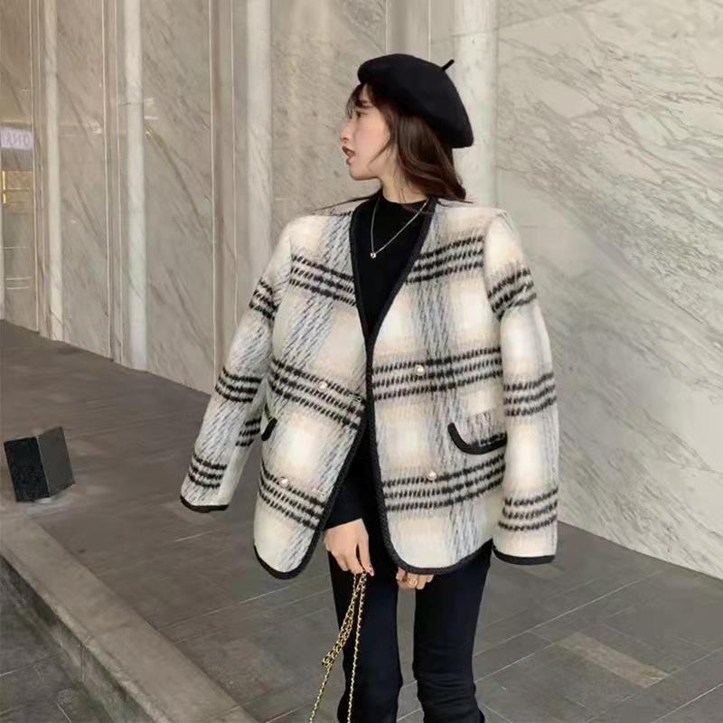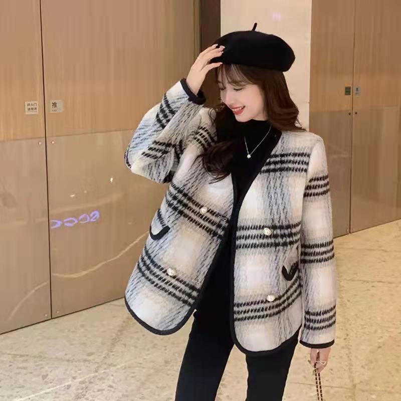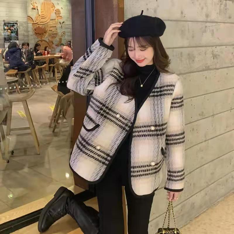 大きいサイズの婦人服2023ファットシスター春の新バージョンのクリスマスレッド気質オールマッチチェック柄ウールコート 大きめサイズ スプリング 春物 8884126128801153