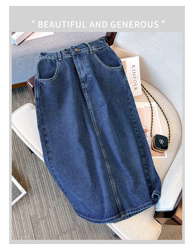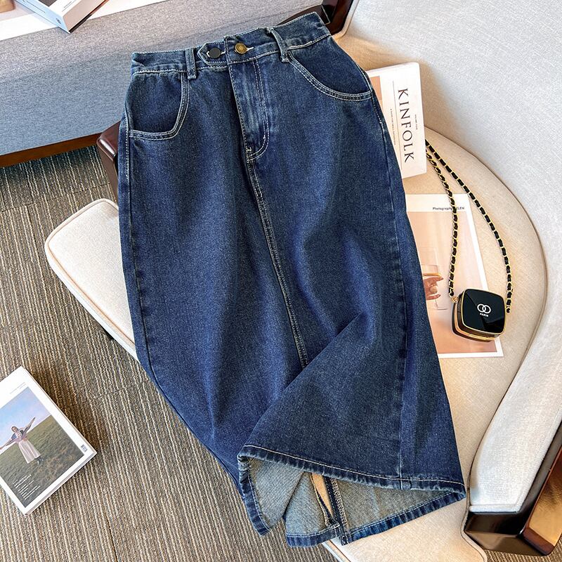 大きいサイズの婦人服 2023 春服脂肪姉妹新しいレトロスリット A ラインスカートハイウエスト痩身デニムスカート ハイウェスト 大きめサイズ スプリング 春物 Aライン 8884163860338462