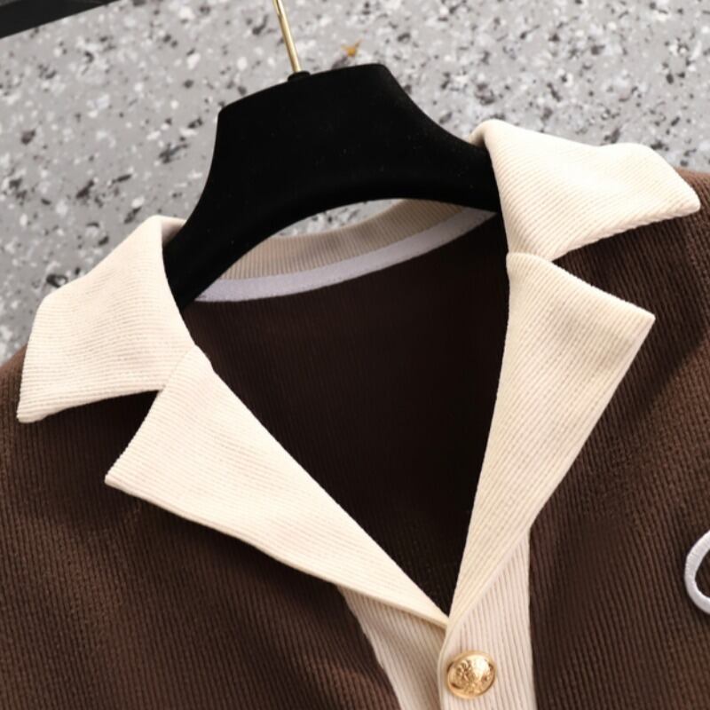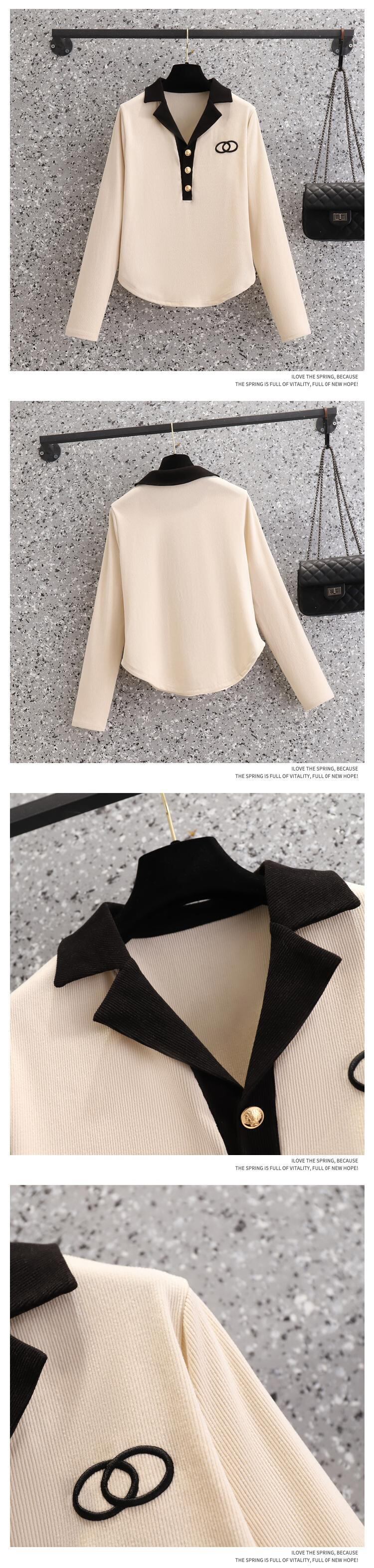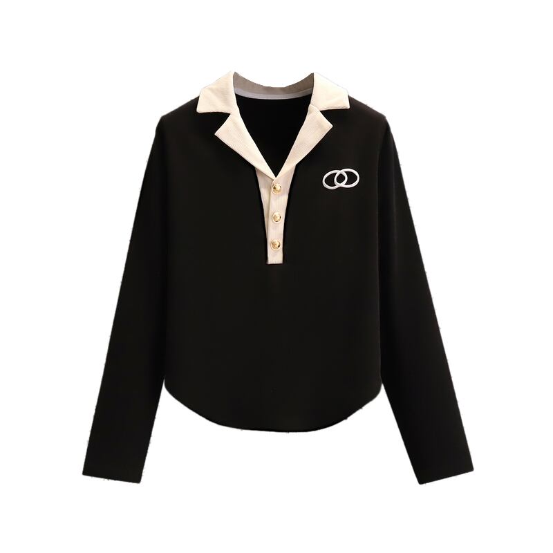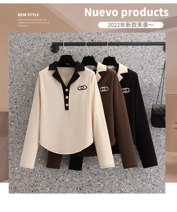 ゆったり薄手トップス 2023春新作 大きいサイズ レディース おしゃれ 長袖ポロ 衿カバーリング肉Tシャツ トレンド ロング 大きめサイズ スプリング 春物 8884151416669635