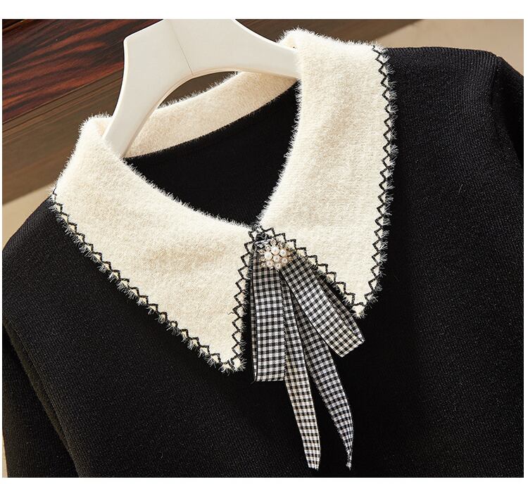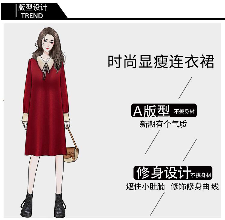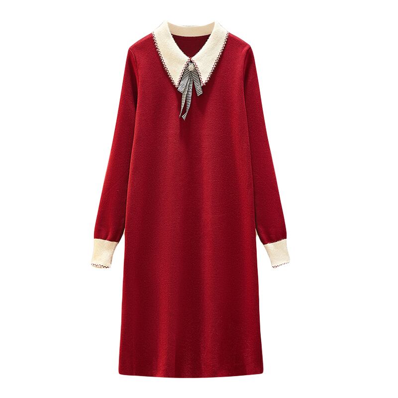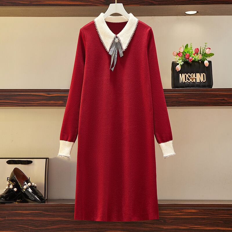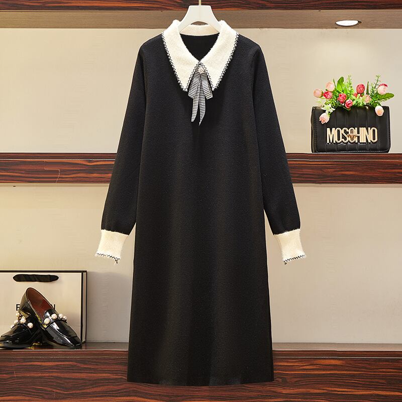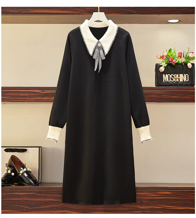 大きいサイズの婦人服2023ファットシスター春の新しいeignスタイルの年齢を減らすゆったりとした薄いニットのミドル丈のドレス 大きめサイズ スプリング 春物 8884199356599415