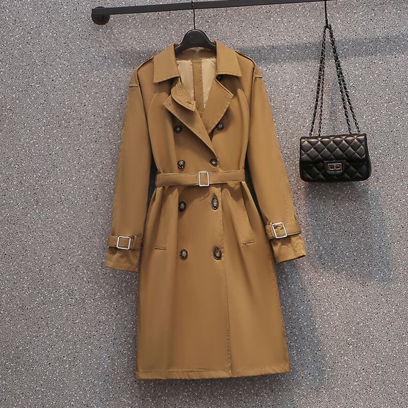 プラスサイズの婦人服 2023 脂肪姉妹春の新ミッドレングス気質ウインドブレーカースリムウエストダブルブレストジャケット女性 大きめサイズ スプリング 春物 888414986632165