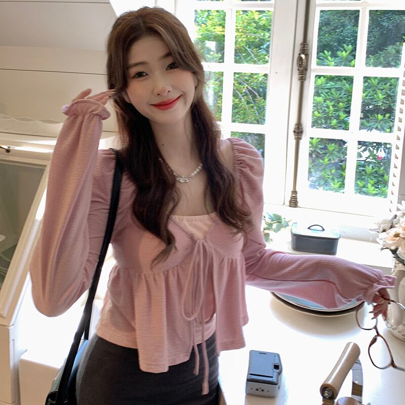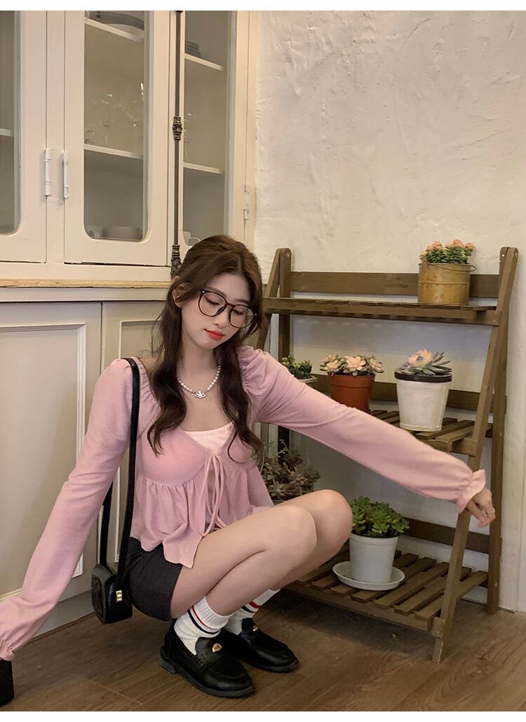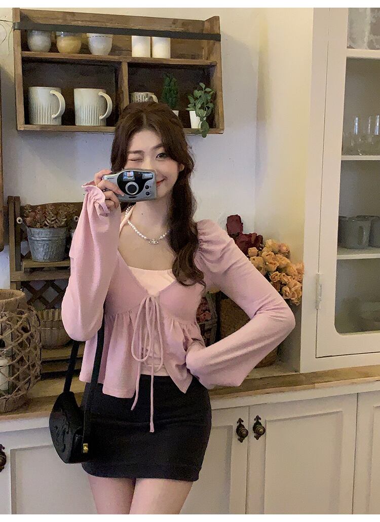 大きいサイズの婦人服 2023 春服ファットシスターズ新作ハンギングネックベスト長袖フリルカーディガン 2 点セット ロング 大きめサイズ スプリング 春物 8884199390730301
