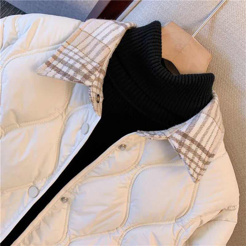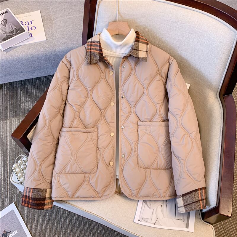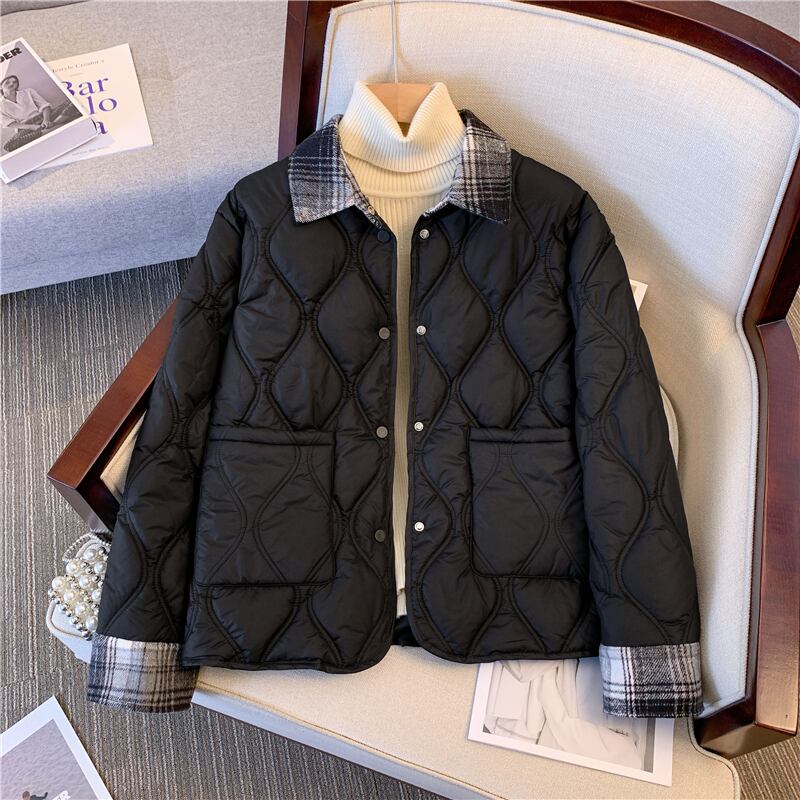 大きいサイズの婦人服 2022 ファットシスター冬の新しい綿の格子縞のシャツスプライシング偽二枚薄い綿のジャケットの女性 コットン 大きめサイズ ウィンター 冬物 8884140995690300