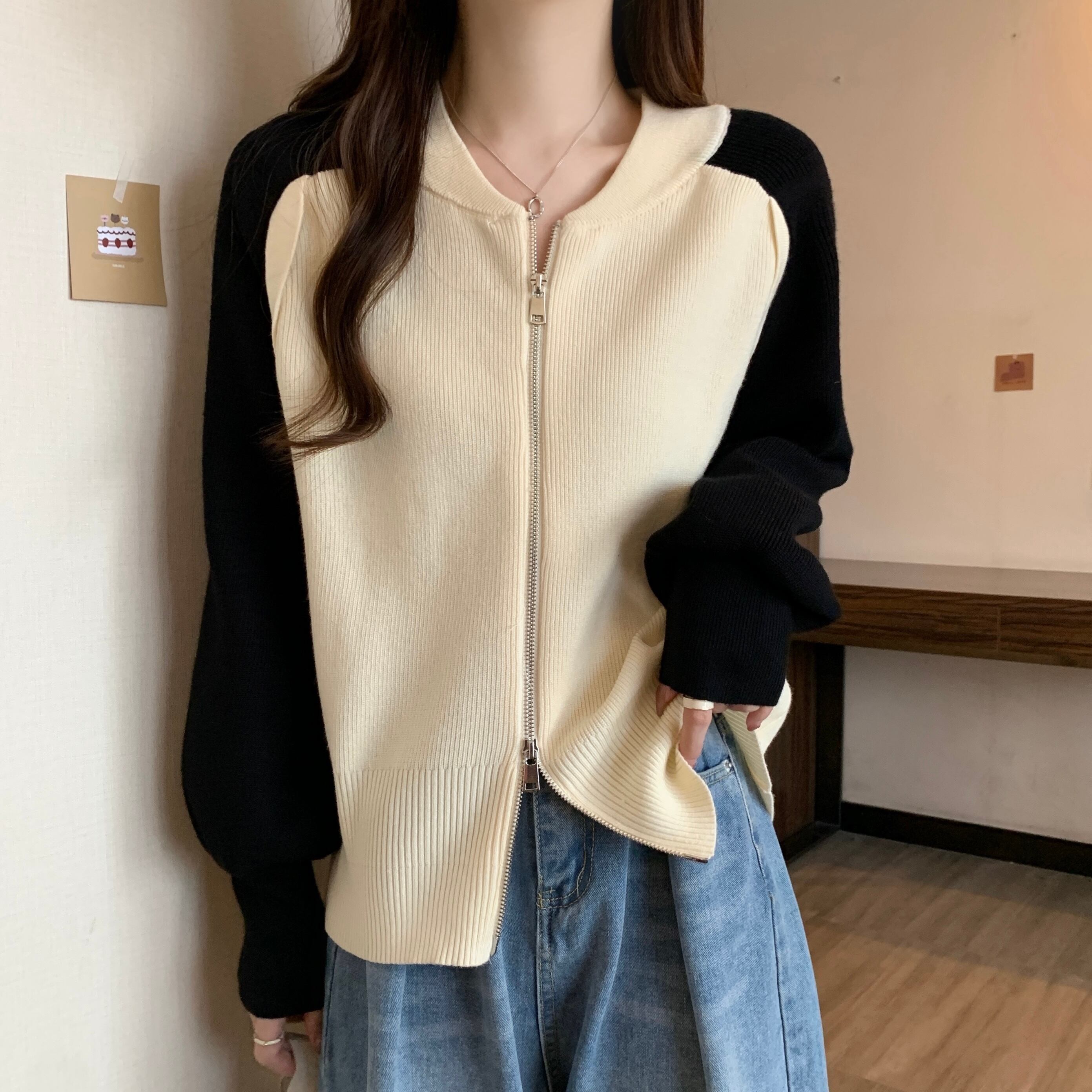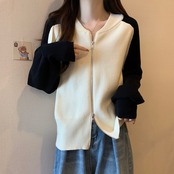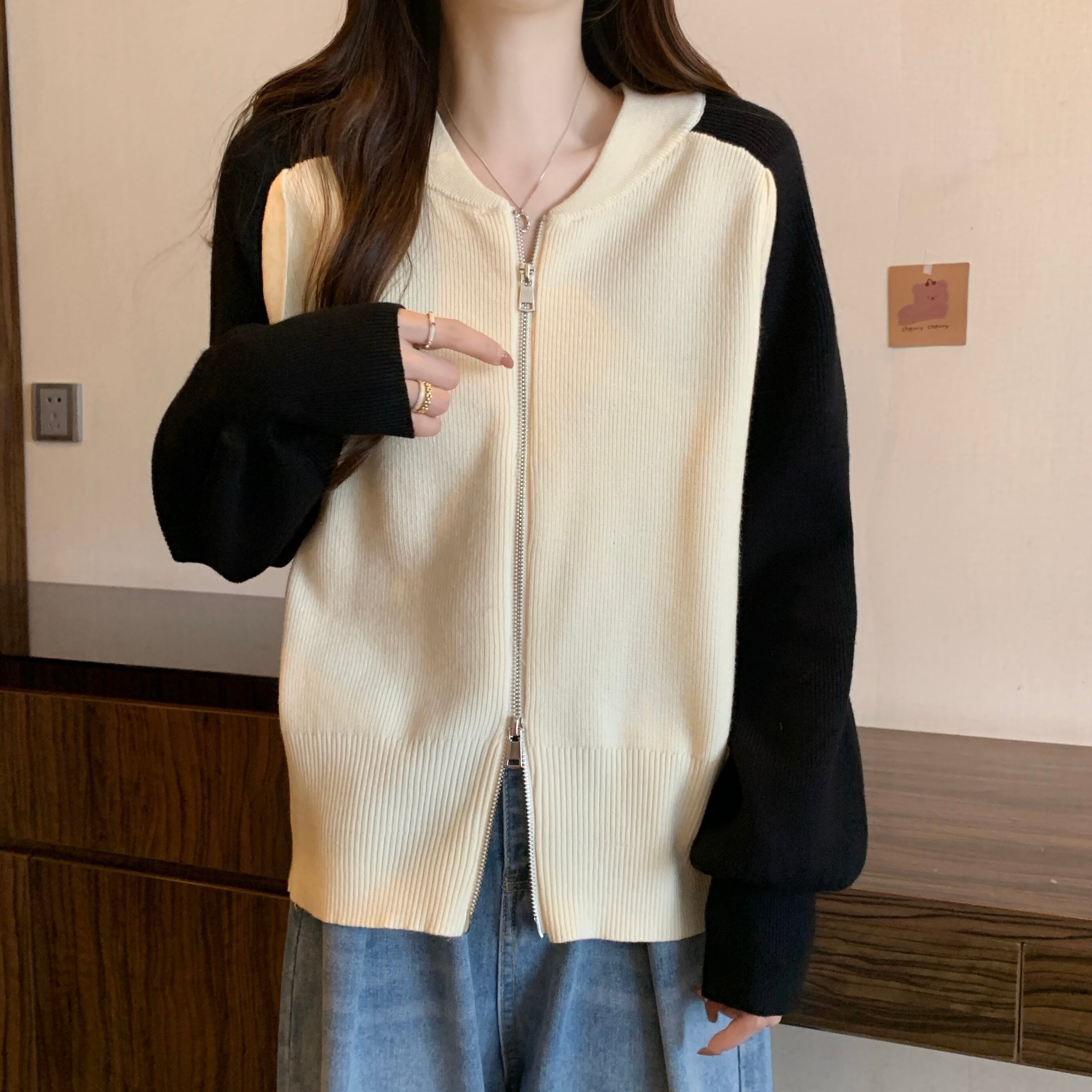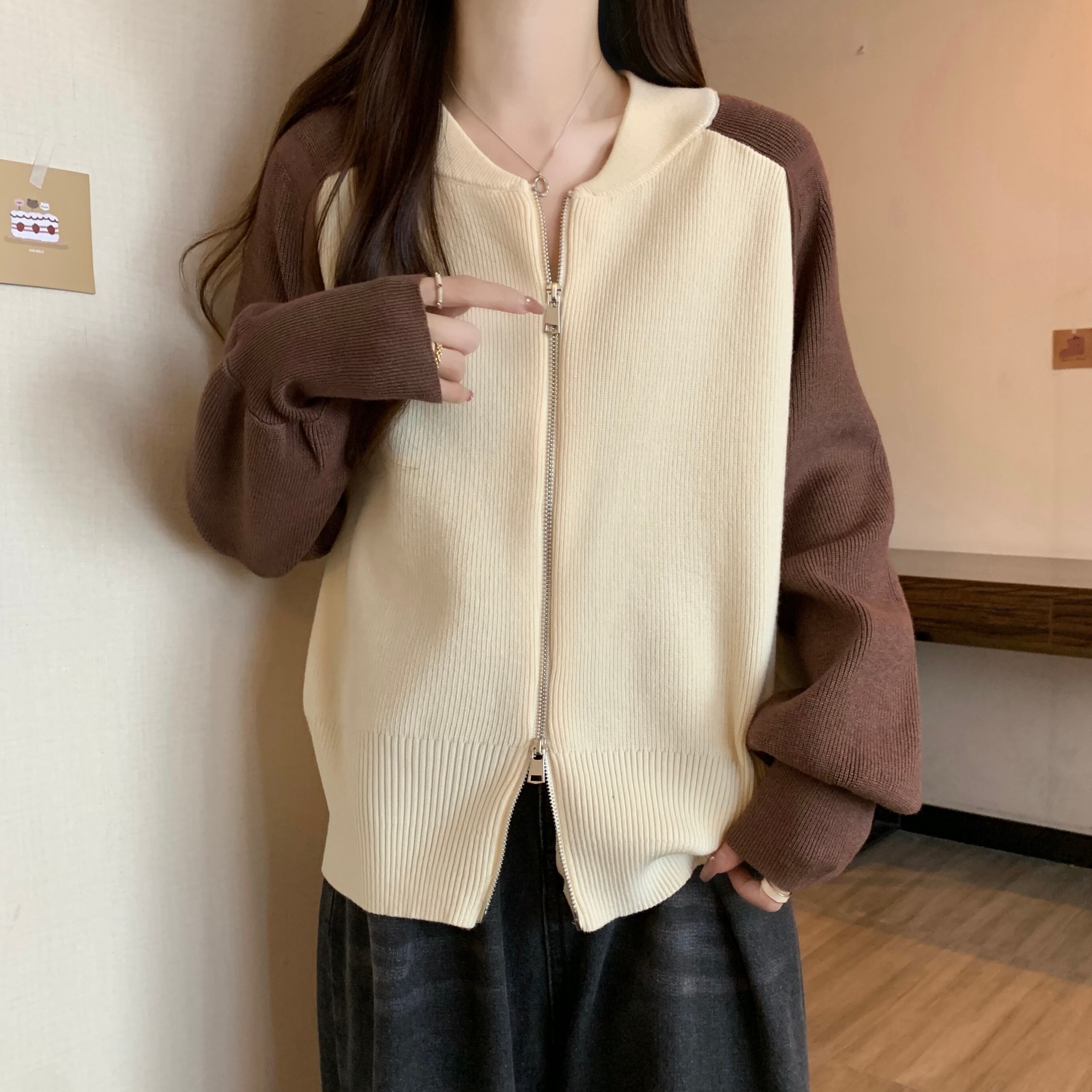 プラスサイズの婦人服 2023 春服脂肪姉妹新しいカジュアルスプライシングコントラストカラーダブルジッパーニットカーディガンセーター女性 大きめサイズ スプリング 春物 8884142123968952