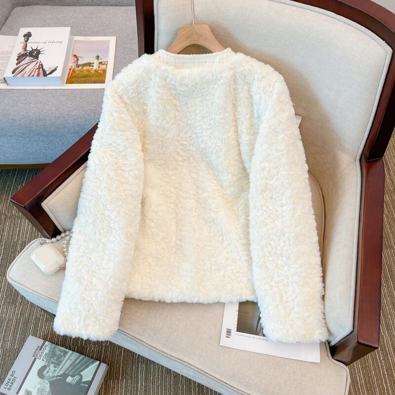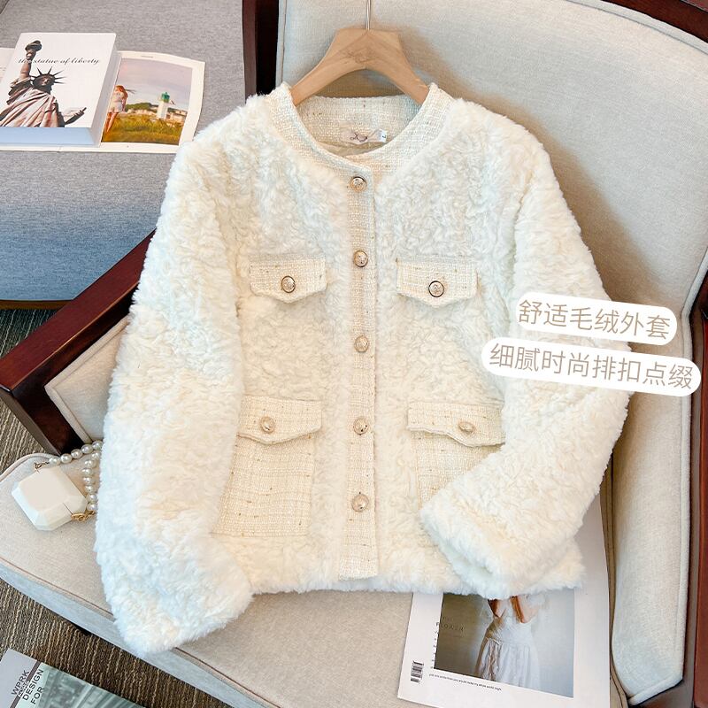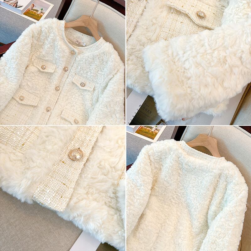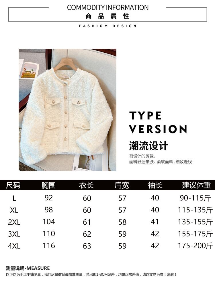 プラスサイズの婦人服2023春の新しいファッションオールマッチ薄い白い子羊の豪華な暖かいジャケット ホワイト 大きめサイズ スプリング 春物 8884166945366627