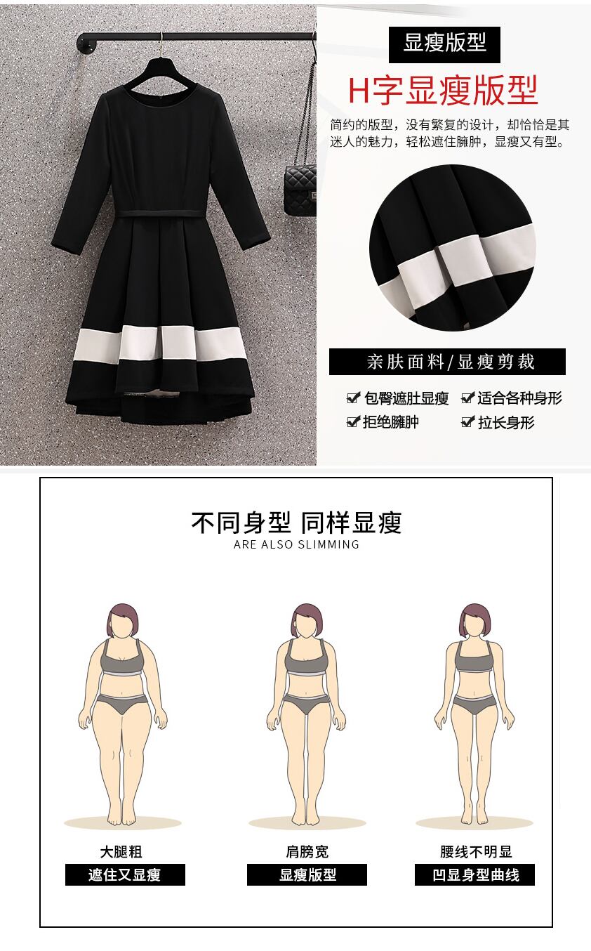 プラスのサイズの婦人服 2023 ファット シスター春の新しい気質スリム ヘップバーン スタイル ミッドレングス a ライン スカート ドレス 大きめサイズ スプリング 春物 Aライン 8884161956518784