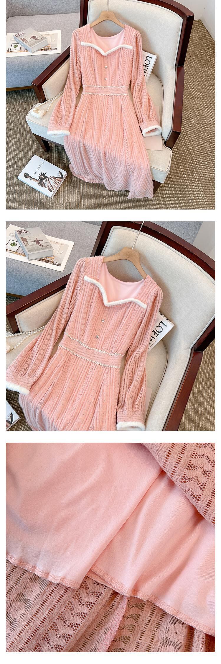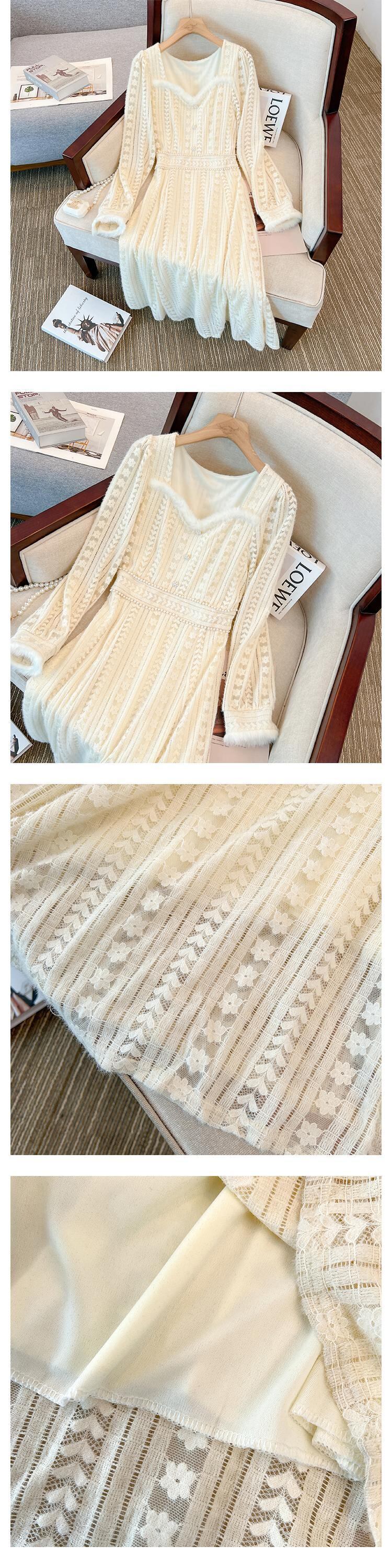 大きいサイズの婦人服 2023 春の新しいスタイルの太った姉妹は、薄くて年齢を減らす気質のレースのステッチのデザインのセンスのドレスに見えます 大きめサイズ スプリング 春物 8884168919831197