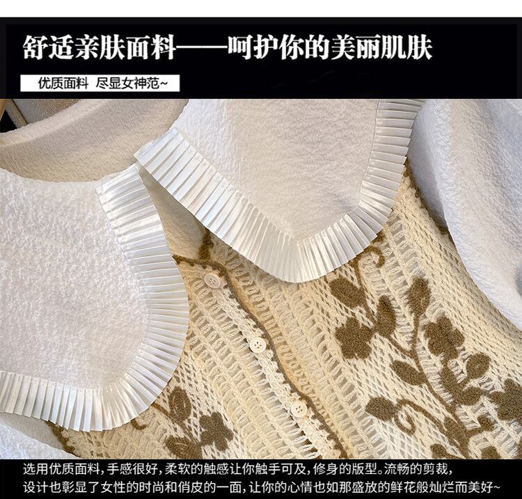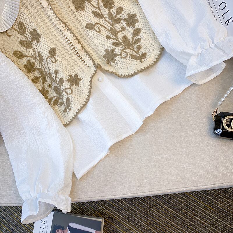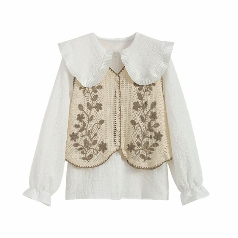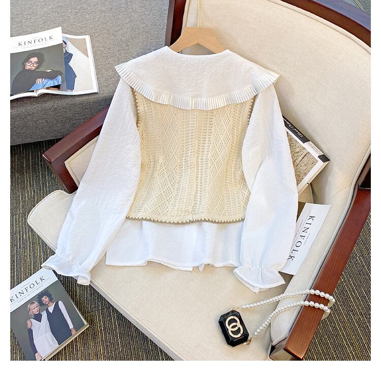 プラスサイズの婦人服 2023 春の新作服脂肪姉妹甘くて薄い人形の襟シャツ中空ベスト 2 点セット 大きめサイズ 大人ガーリー スウィート キュート カジュアル スプリング 春物 8884187114465306