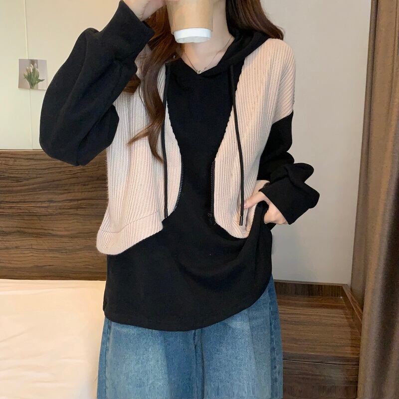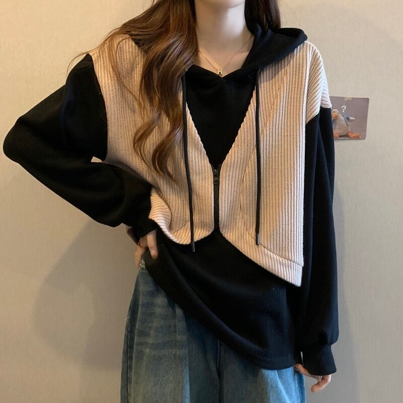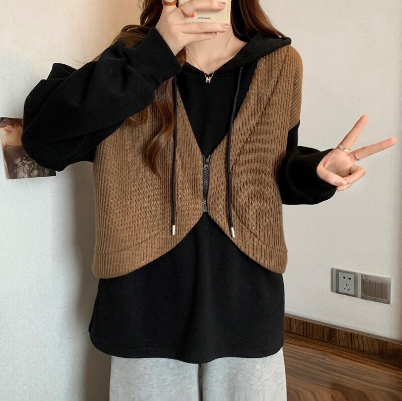 プラスサイズの婦人服 2023 ファットシスター春の新しい偽のツーピースのフード付きセーター厚く緩いスリム長袖ジャケット ロング 大きめサイズ スプリング 春物 8884145051613404