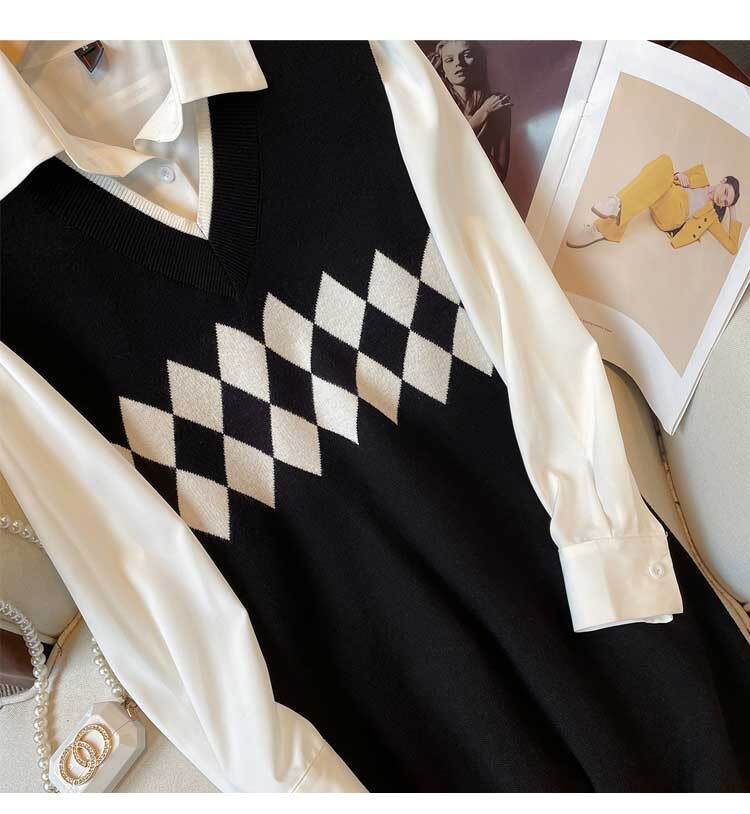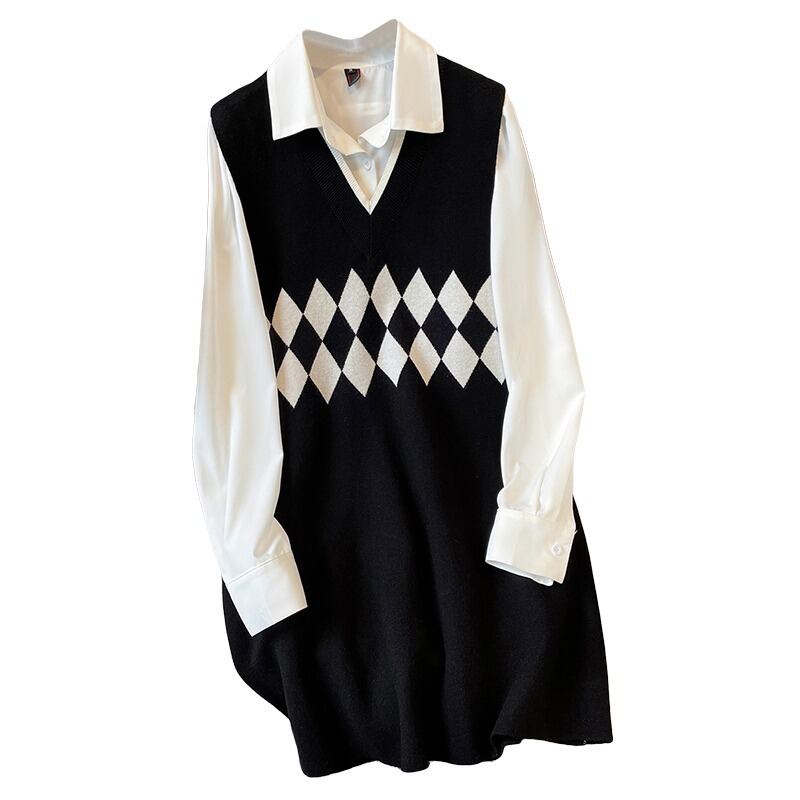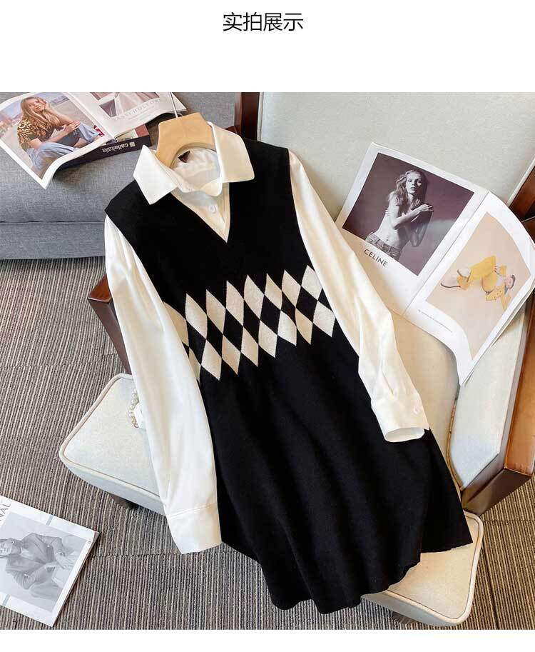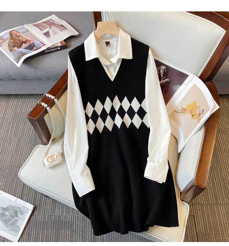 プラスサイズの婦人服 2023 トレンディな女性の春の新しいファットシスターファッションリブノースリーブウールスカートシャツツーピーススーツトレンディ 大きめサイズ スプリング 春物 88841281654322