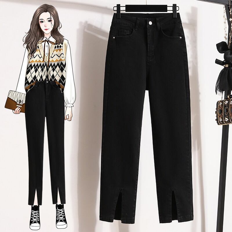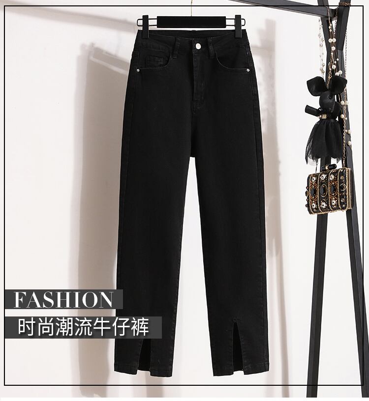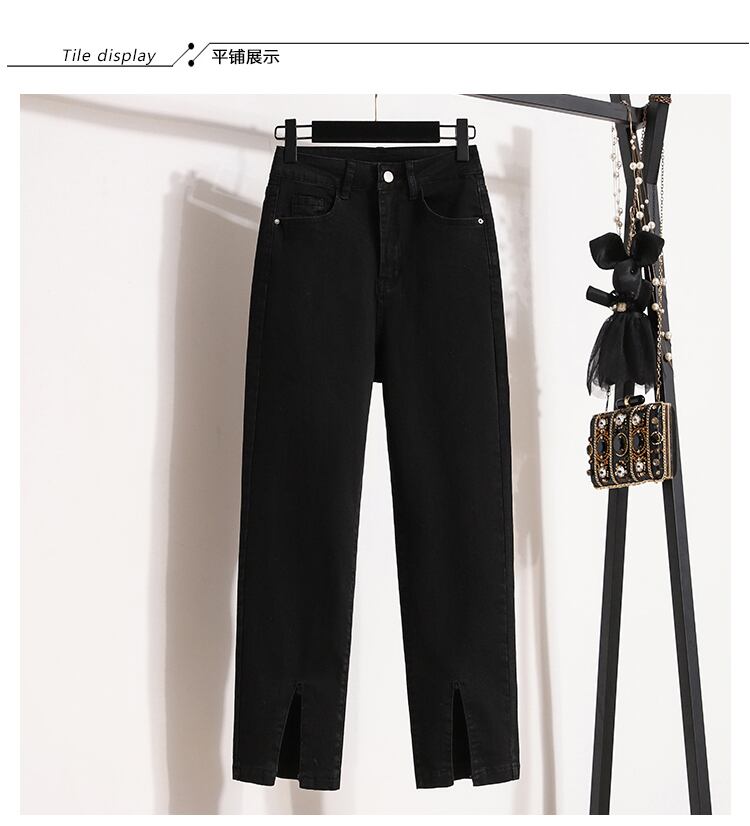 大きいサイズの婦人服 2023 トレンディな女性の春の新しいスタイルのファット シスター スリット ルーズで薄いストレッチ デニム 9 ポイント シガレット パンツ トレンディ 大きめサイズ スプリング 春物 8884143947995108