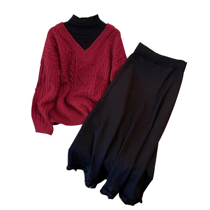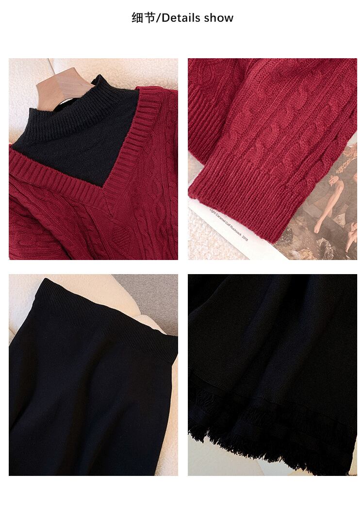 プラスサイズの婦人服 2023 ファットシスター春の新気質フェイクツーピースニットセータースカートツーピーススーツ 大きめサイズ スプリング 春物 8884119431597110
