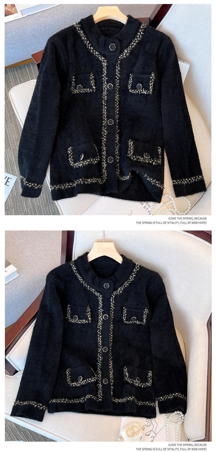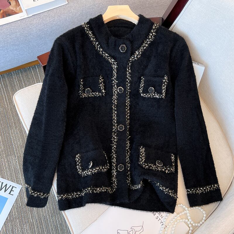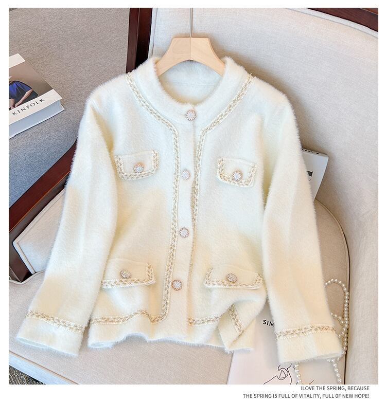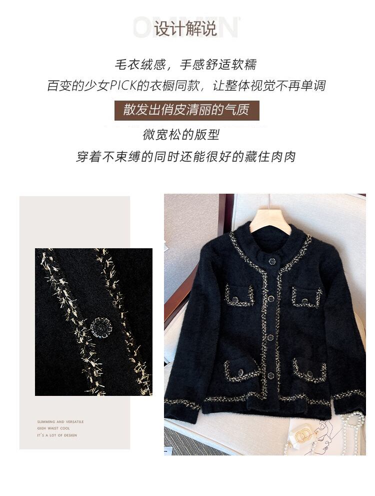プラスサイズの婦人服 2023 ファットシスター春の新気質バージョン緩いオールマッチイミテーションミンクベルベットカーディガンジャケット女性 大きめサイズ スプリング 春物 8884190686502962