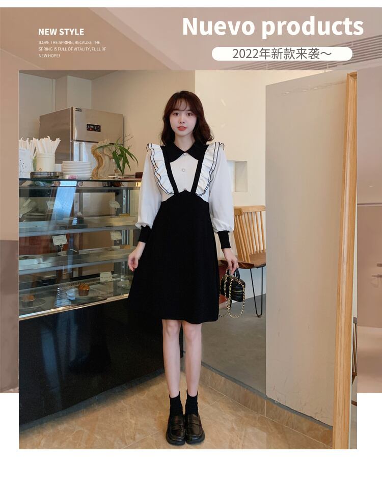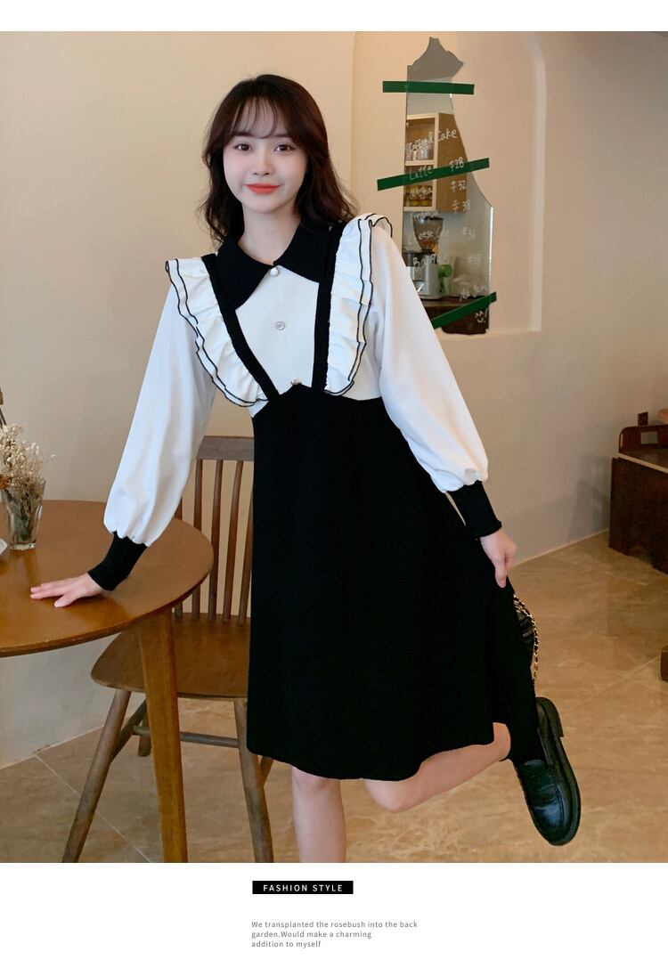 プラスサイズの婦人服 2023 ファットシスター春の新フレンチフリルステッチ偽ツーピースヘップバーンセータードレス 大きめサイズ スプリング 春物 8884123516230325