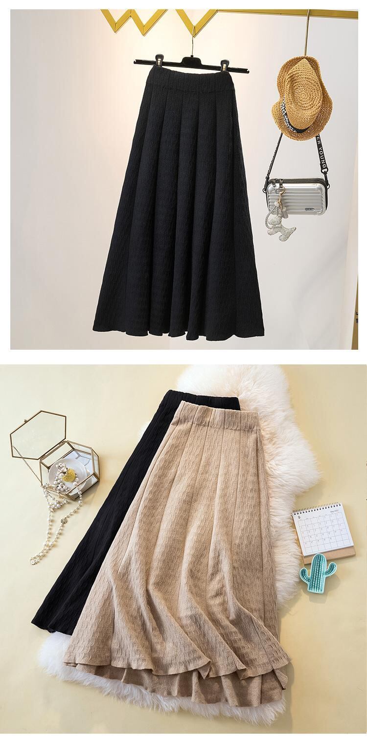 プラスサイズの婦人服 2023 春の新痩身オールマッチニットスカートハイウエスト a ラインロングスカートの女性 ハイウェスト 大きめサイズ スプリング 春物 Aライン 8884141737142614