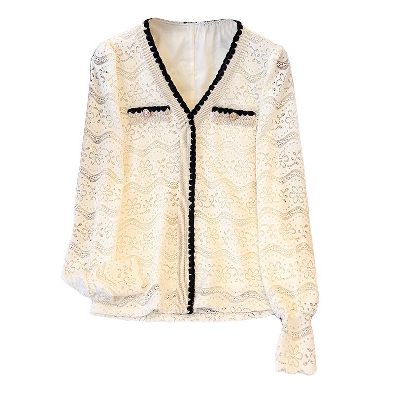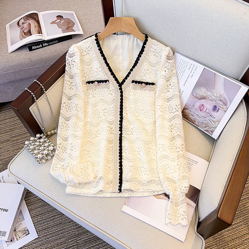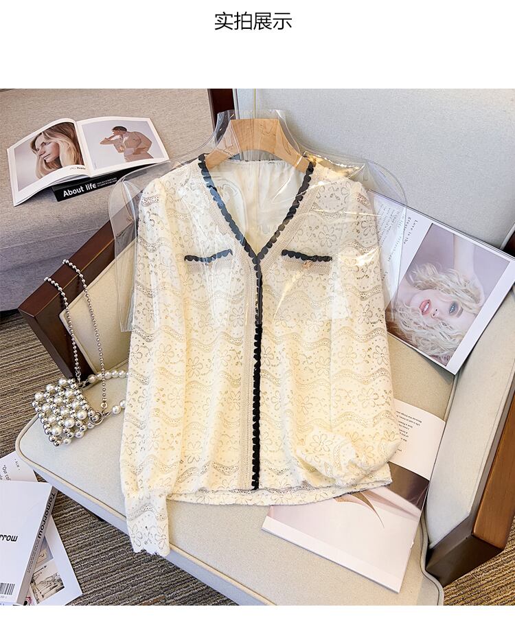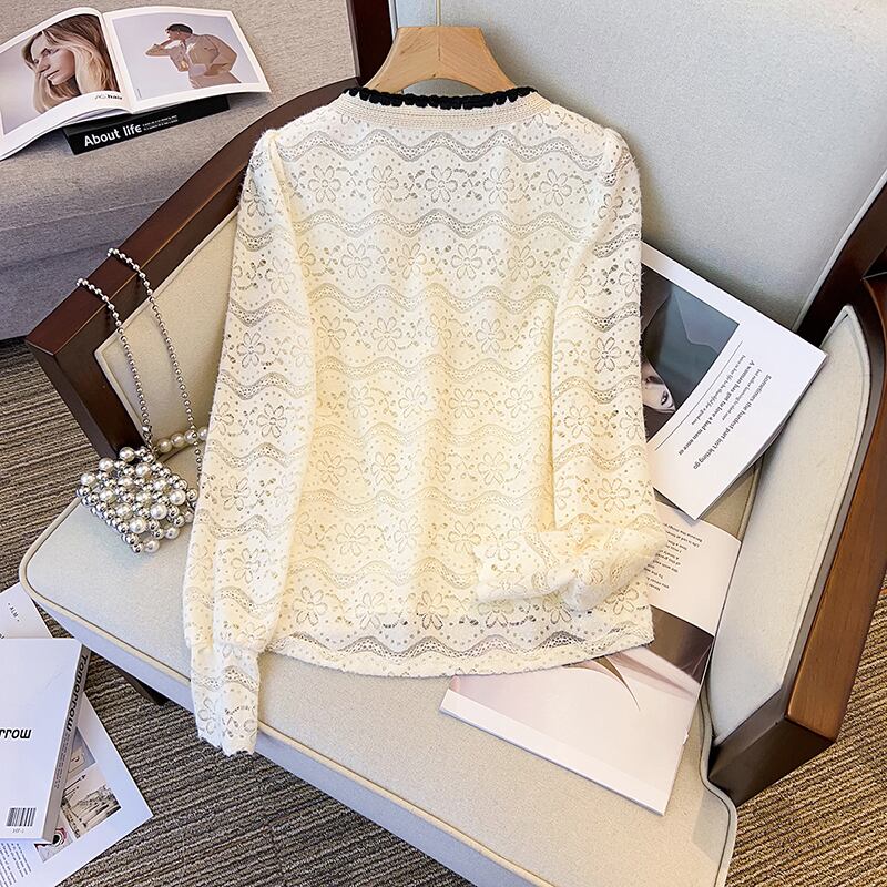 プラスサイズの婦人服 2023 春ファットシスター新ファッションレースエレガントな薄いレース長袖トップ底入れシャツ ロング 大きめサイズ スプリング 春物 888415480944588