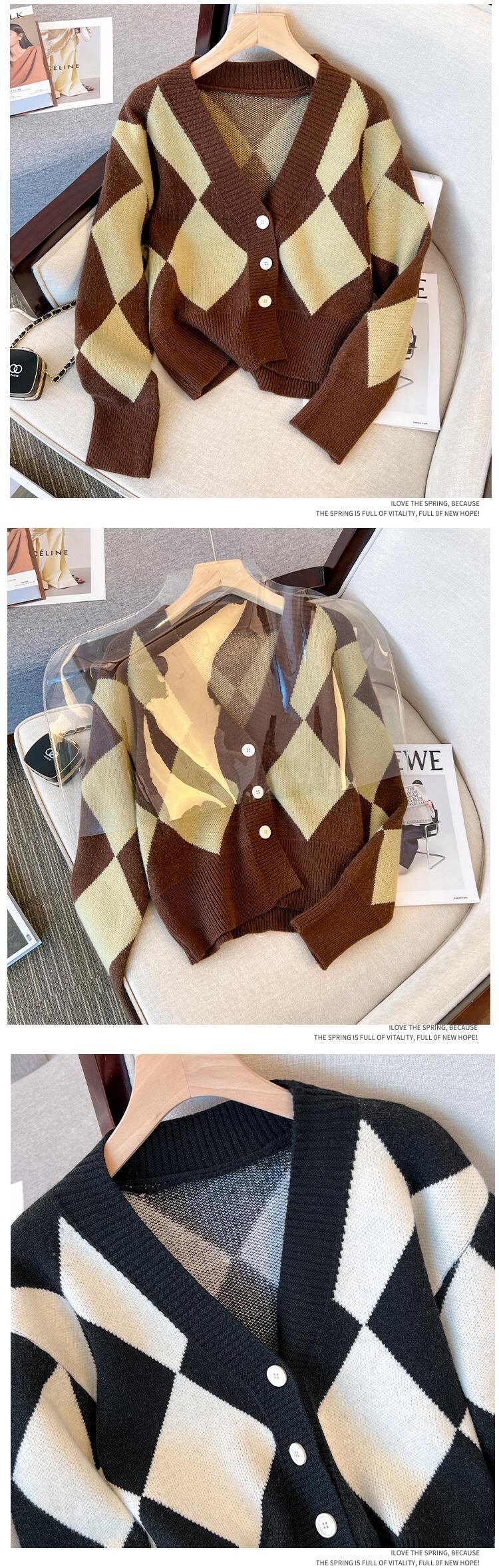 プラスサイズの婦人服 2023 ファットシスター春の新バージョン緩い v ネック菱形オールマッチセーターカーディガンジャケット女性 大きめサイズ スプリング 春物 Vネック 8884151383050451