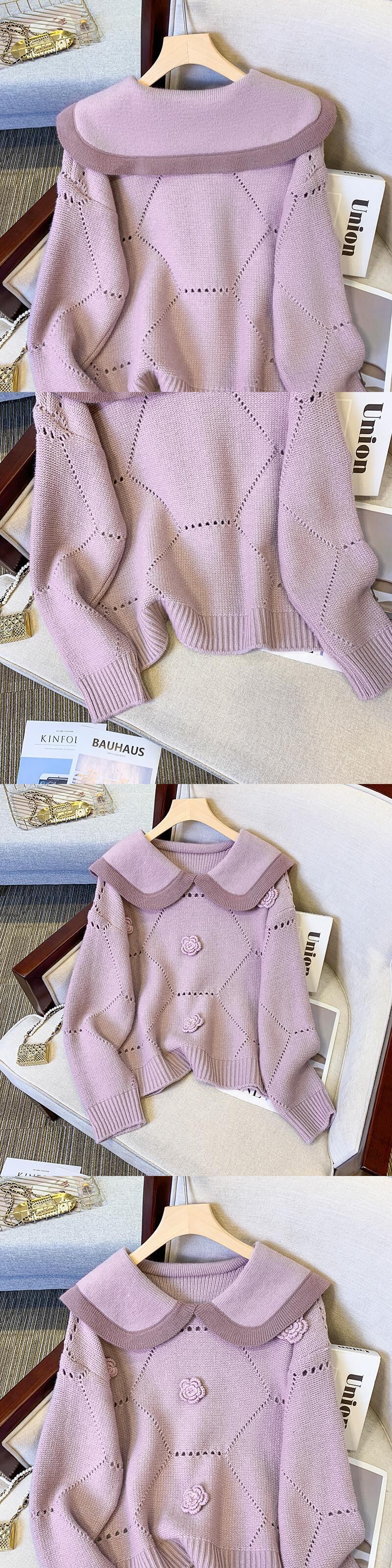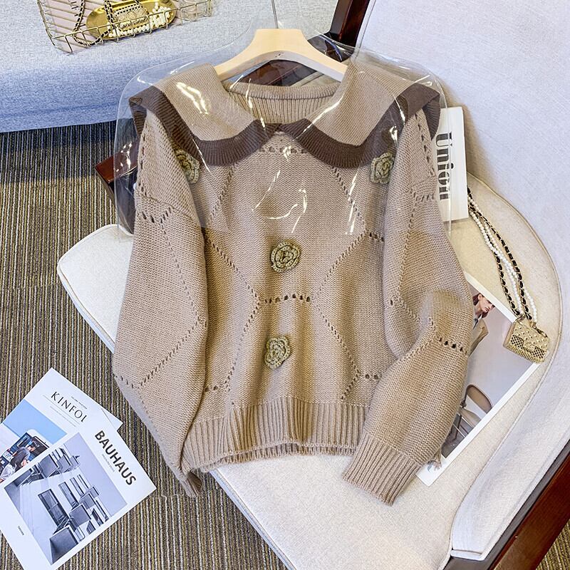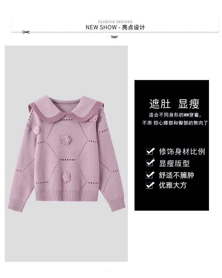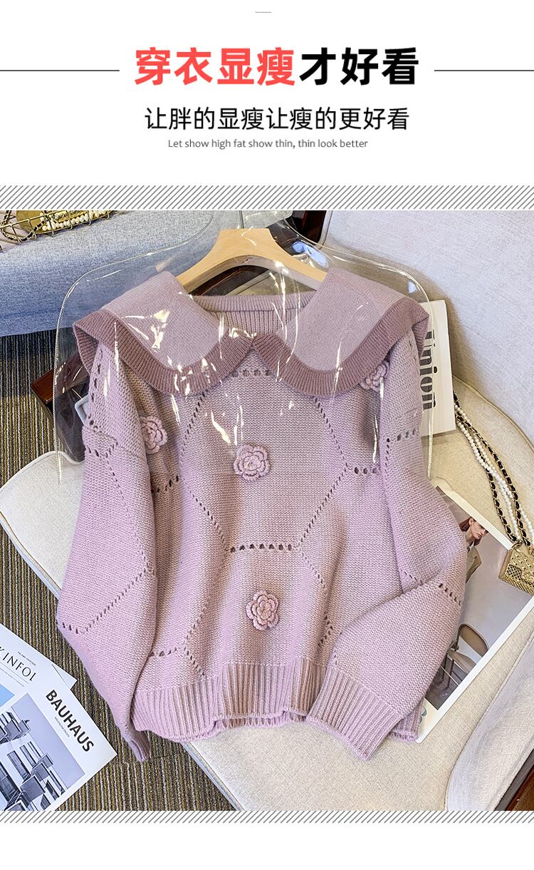 プラスサイズの婦人服 2023 ファットシスター春の新しい人形の襟のセーターのデザインセンス薄型セクションセータートップ女性 大きめサイズ スプリング 春物 8884114144626697