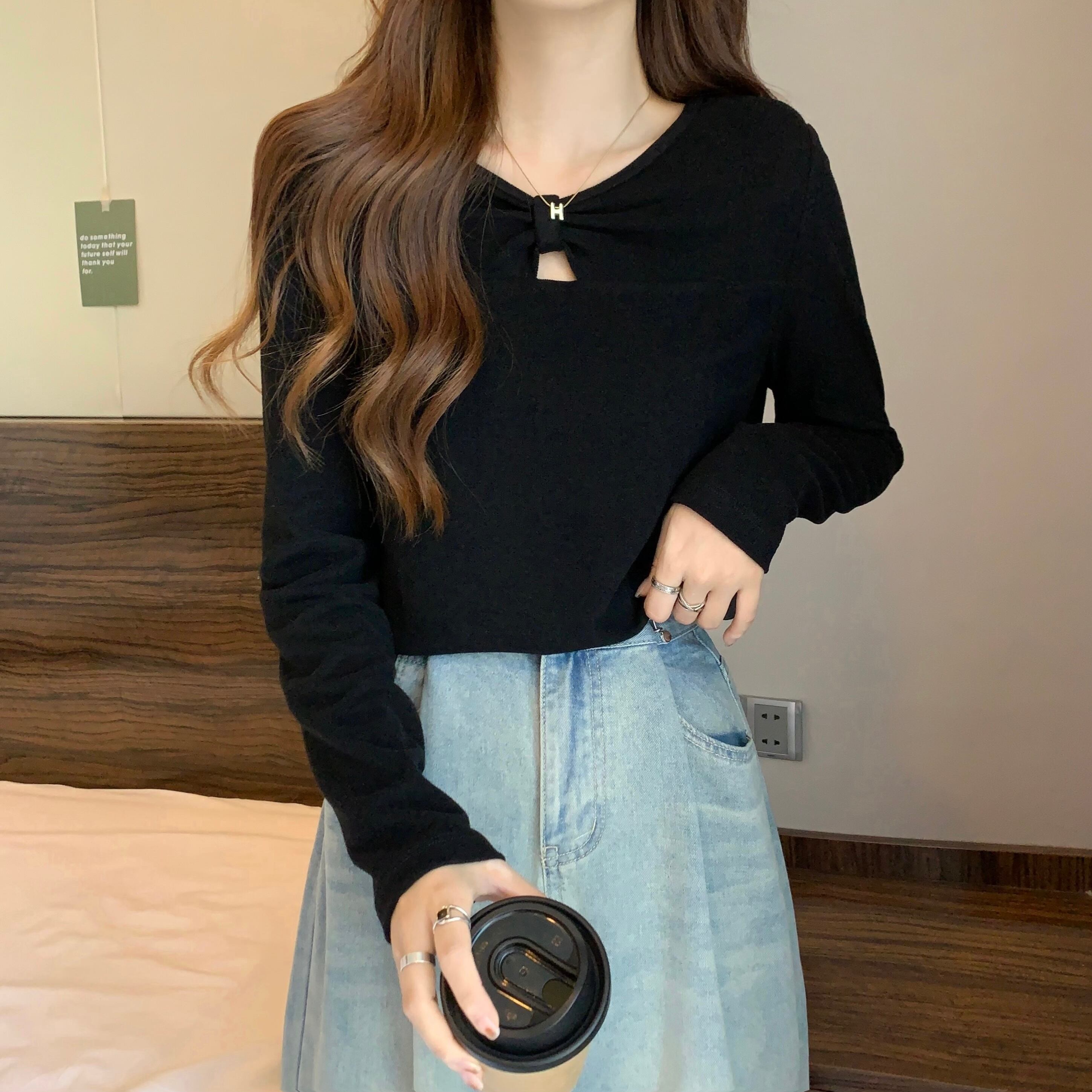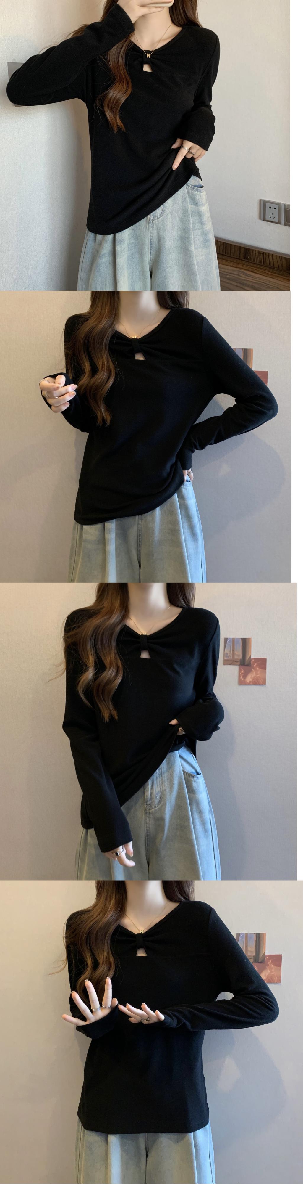 プラスサイズの婦人服 2023 ファットシスター春の新無地ドイツベルベット Tシャツ V ネック長袖底入れシャツ女性 ロング 大きめサイズ スプリング 春物 Vネック ソリッドカラー 8884128942143828