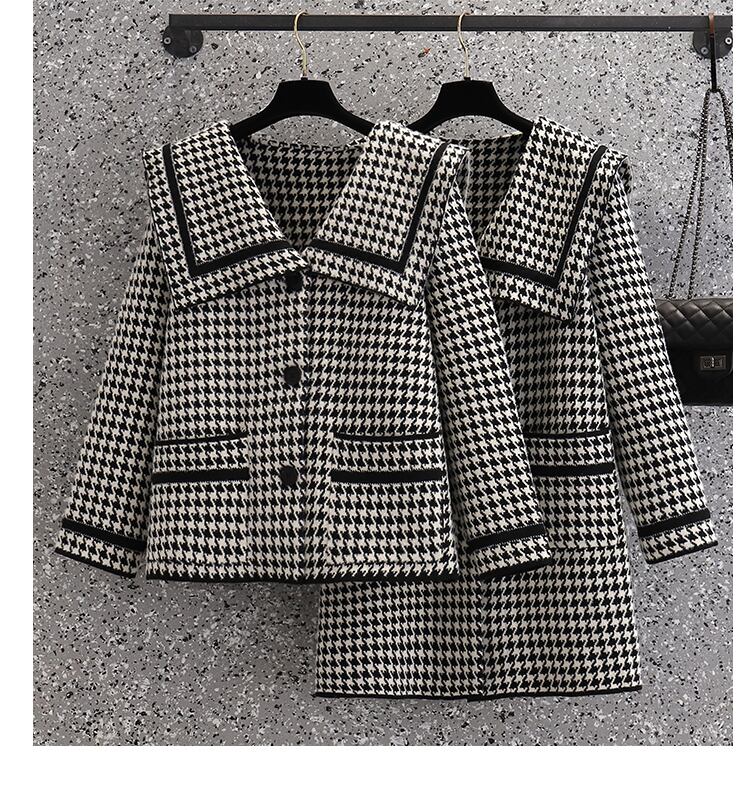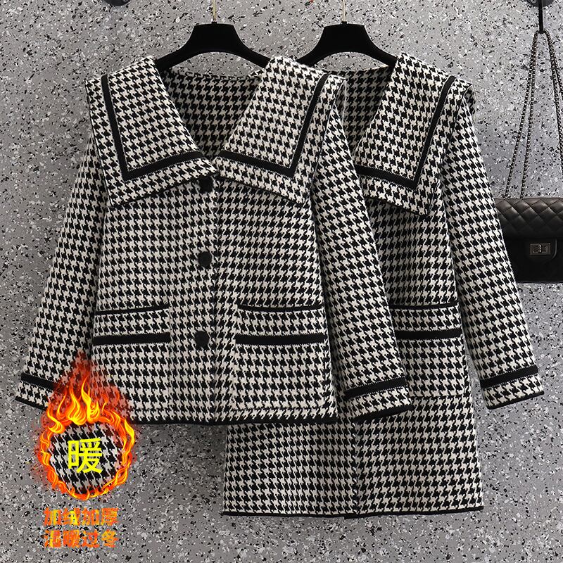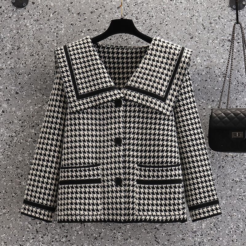 プラスサイズの婦人服 2023 トレンディな女性の春の新しいファットシスター千鳥格子柄の模造ミンクベルベットニットジャケットカーディガンコート 大きめサイズ スプリング 春物 8884133985941202