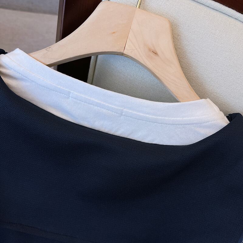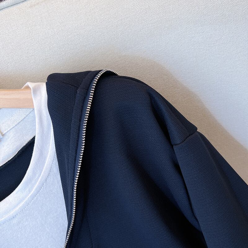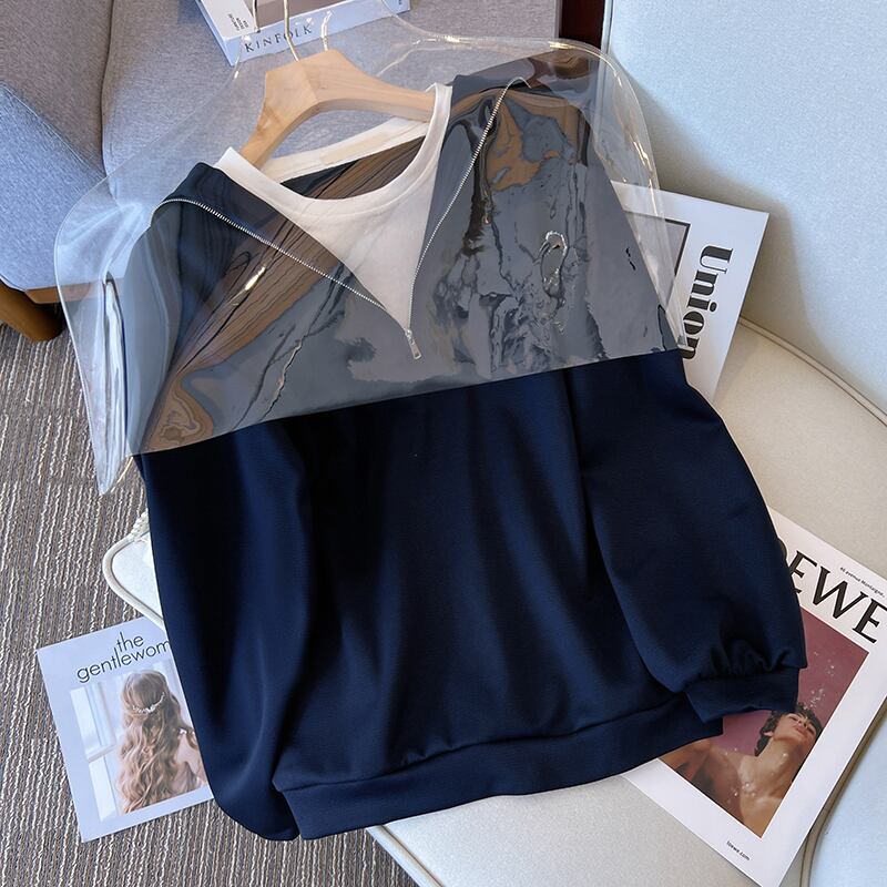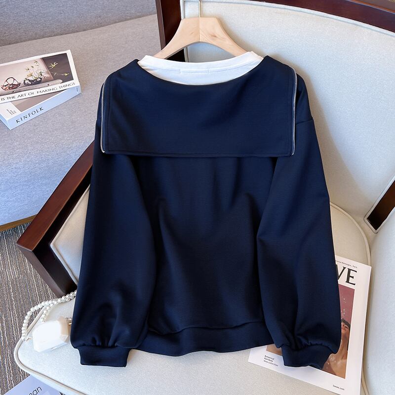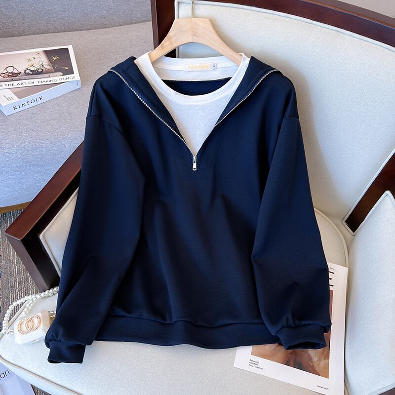 プラスサイズの婦人服 2023 トレンディな女性の春の新しい太った姉妹の偽のツーピースのネイビーの襟のフード付きの怠惰なスタイルのオールマッチのセーターの潮 大きめサイズ スプリング 春物 8884129055295505