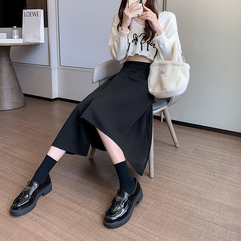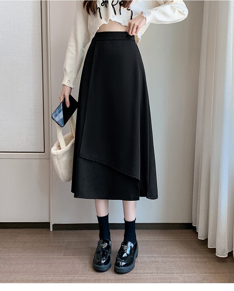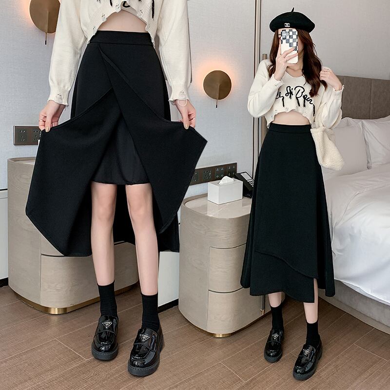 大きいサイズの婦人服 2023 ファットシスター春の新作ミッドレングススカート不規則なハイウエストスーツ A ラインスカートの女性 大きめサイズ スプリング 春物 Aライン 8884153757707698