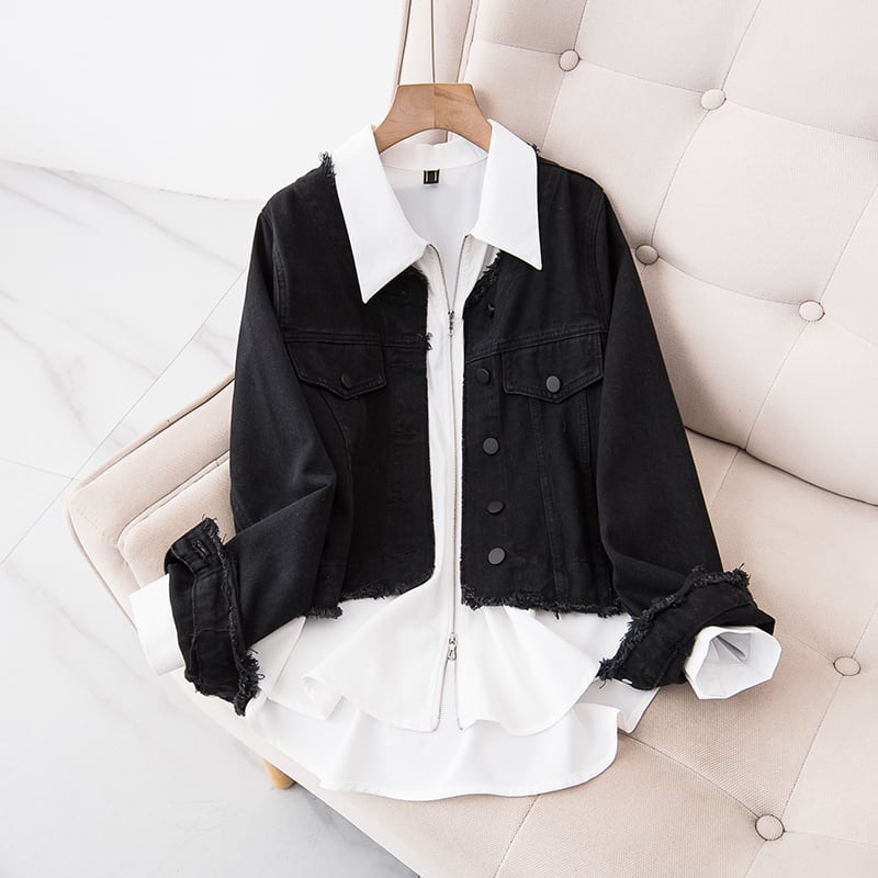 色:白のシャツ,黒いジャケット,シャツ+デニムジャケット