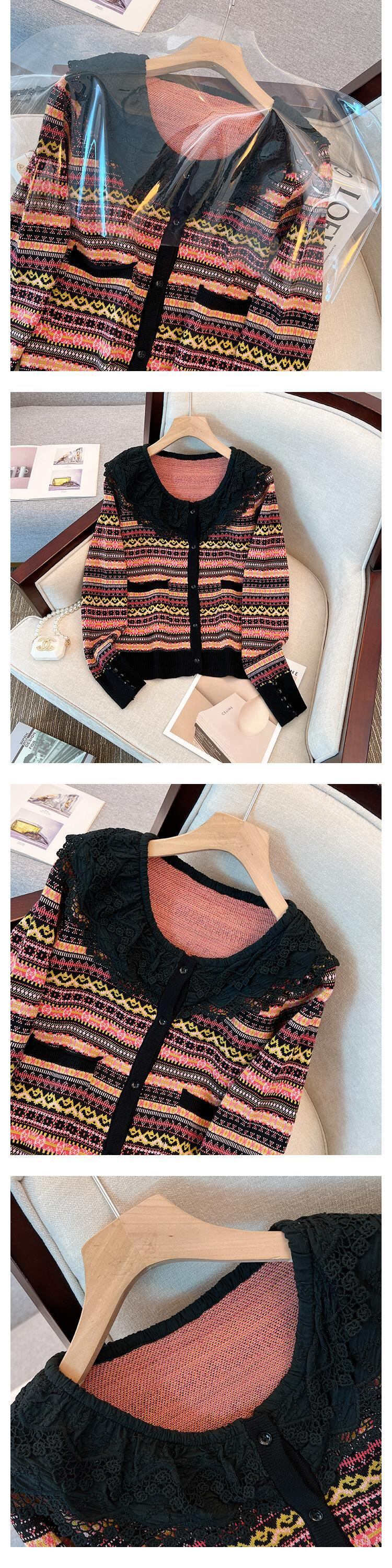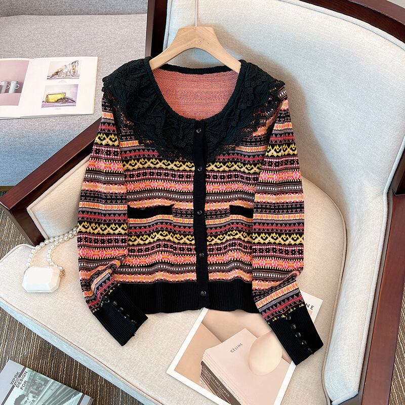 プラスサイズの婦人服 2023 春の新ファットシスターファッションデザインステッチ人形の襟カーディガンセーター女性 大きめサイズ スプリング 春物 888419448892167