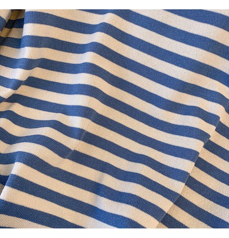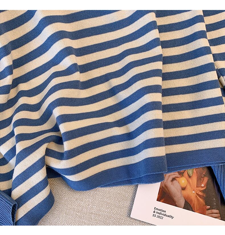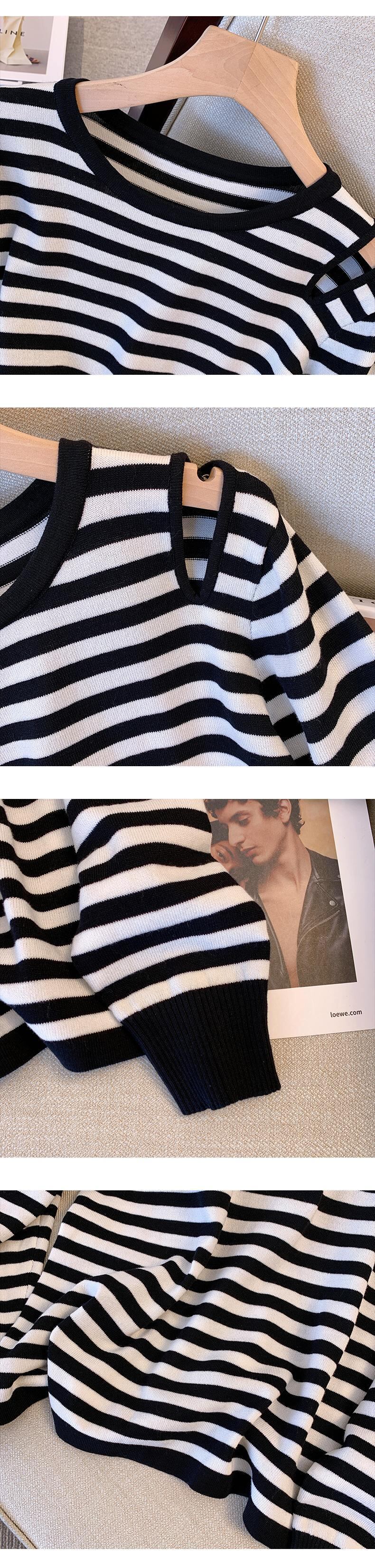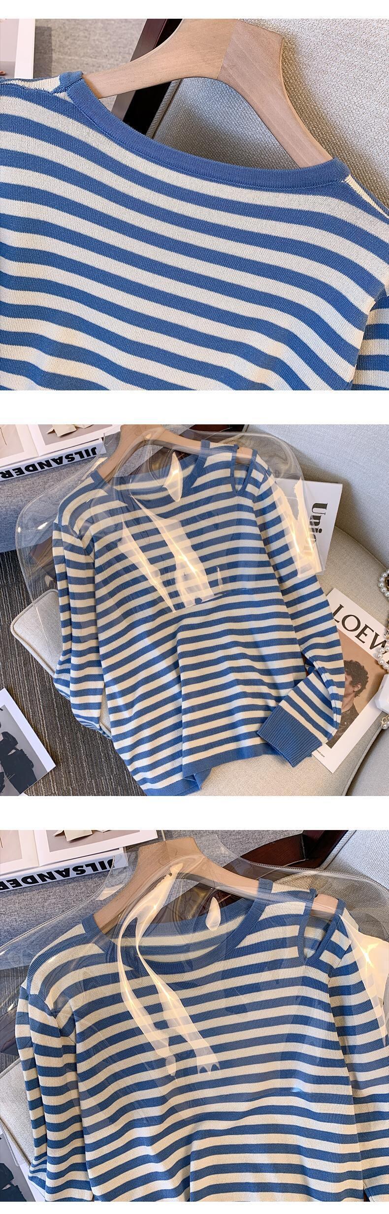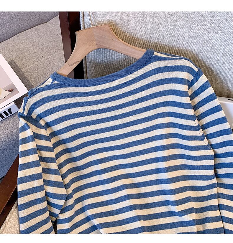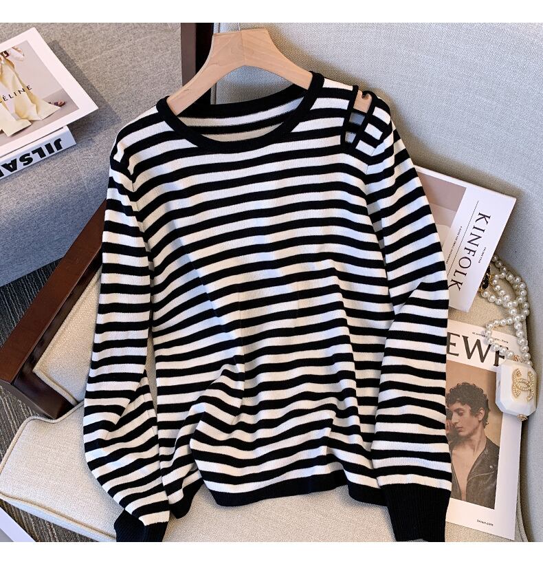 プラスサイズの婦人服 2023 ファットシスター春の新カジュアルオールマッチ痩身長袖ストライプセータープルオーバートップ ロング 大きめサイズ スプリング 春物 8884183714011404
