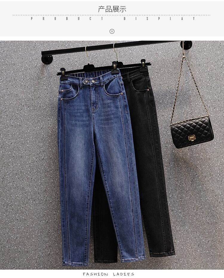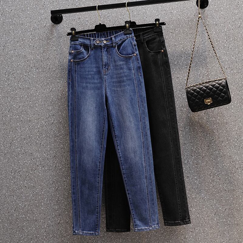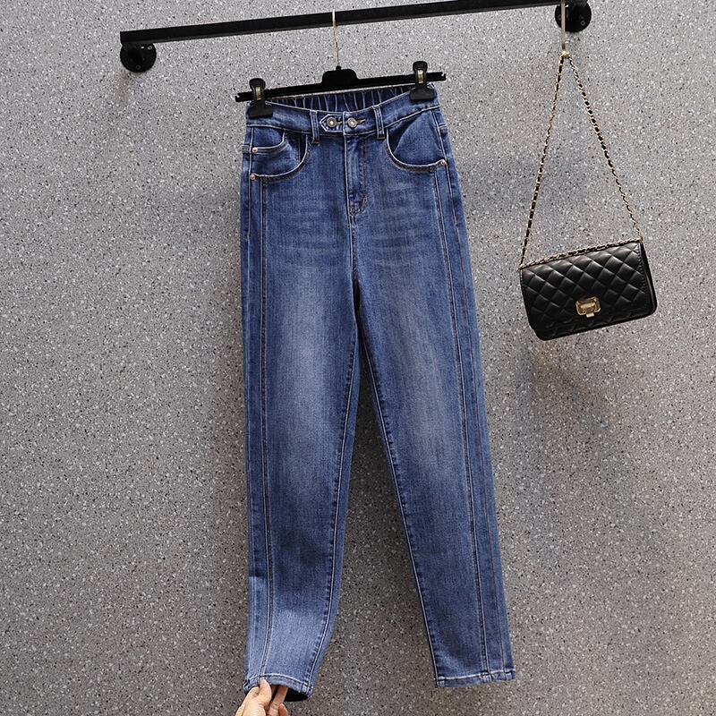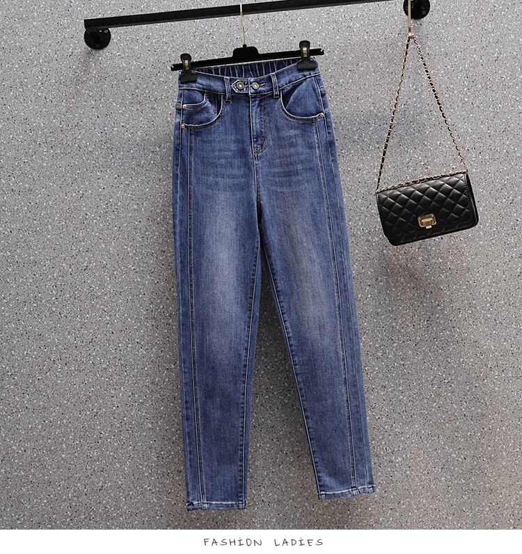 プラスサイズの婦人服2023春の新しいファットシスターハイウエストルーズオールマッチ気質カジュアルファッションデニムストレートレッグパンツ ハイウェスト 大きめサイズ スプリング 春物 8884163907822947