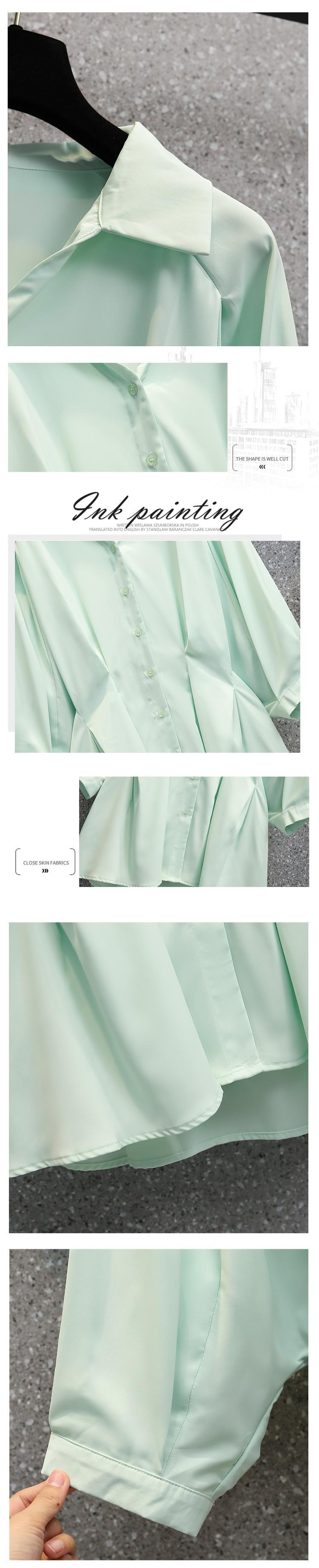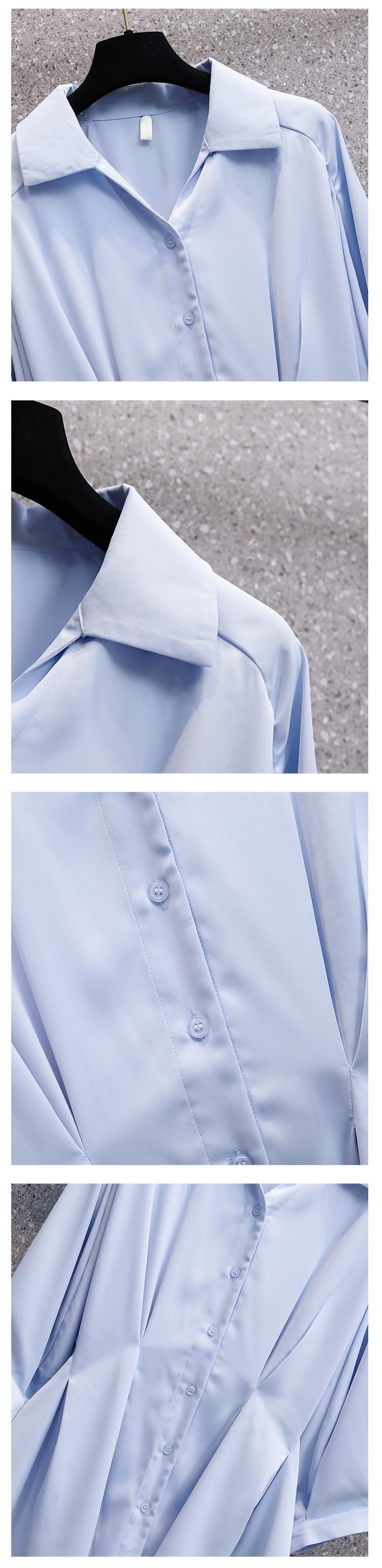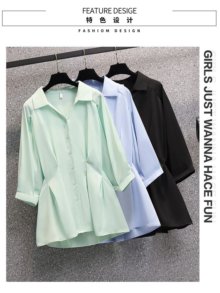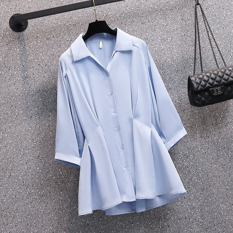 大きいサイズの婦人服 2023 夏の新しいファット シスター オールマッチ緩い肉カバー デザイン センス無地気質シャツ女性 大きめサイズ サマー 夏物 ソリッドカラー 8884112612631372