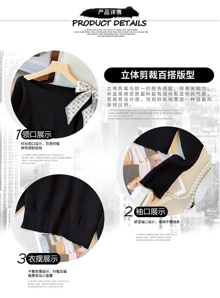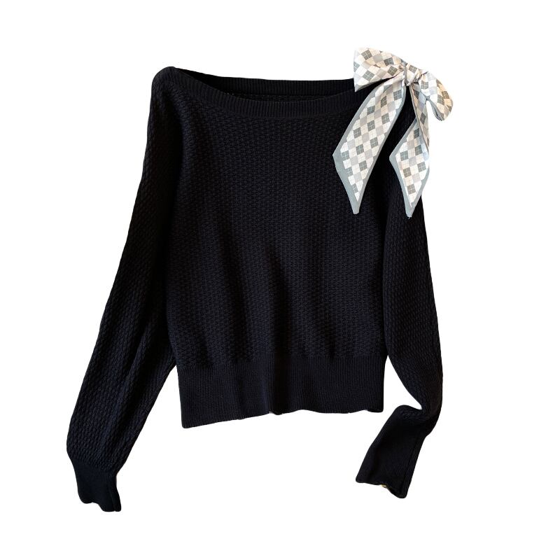 プラスサイズの婦人服 2023 ファットシスター春の新ファッションデザインの弓ルーズで薄いニットトップの女性 リボン 大きめサイズ スプリング 春物 8884152323138018