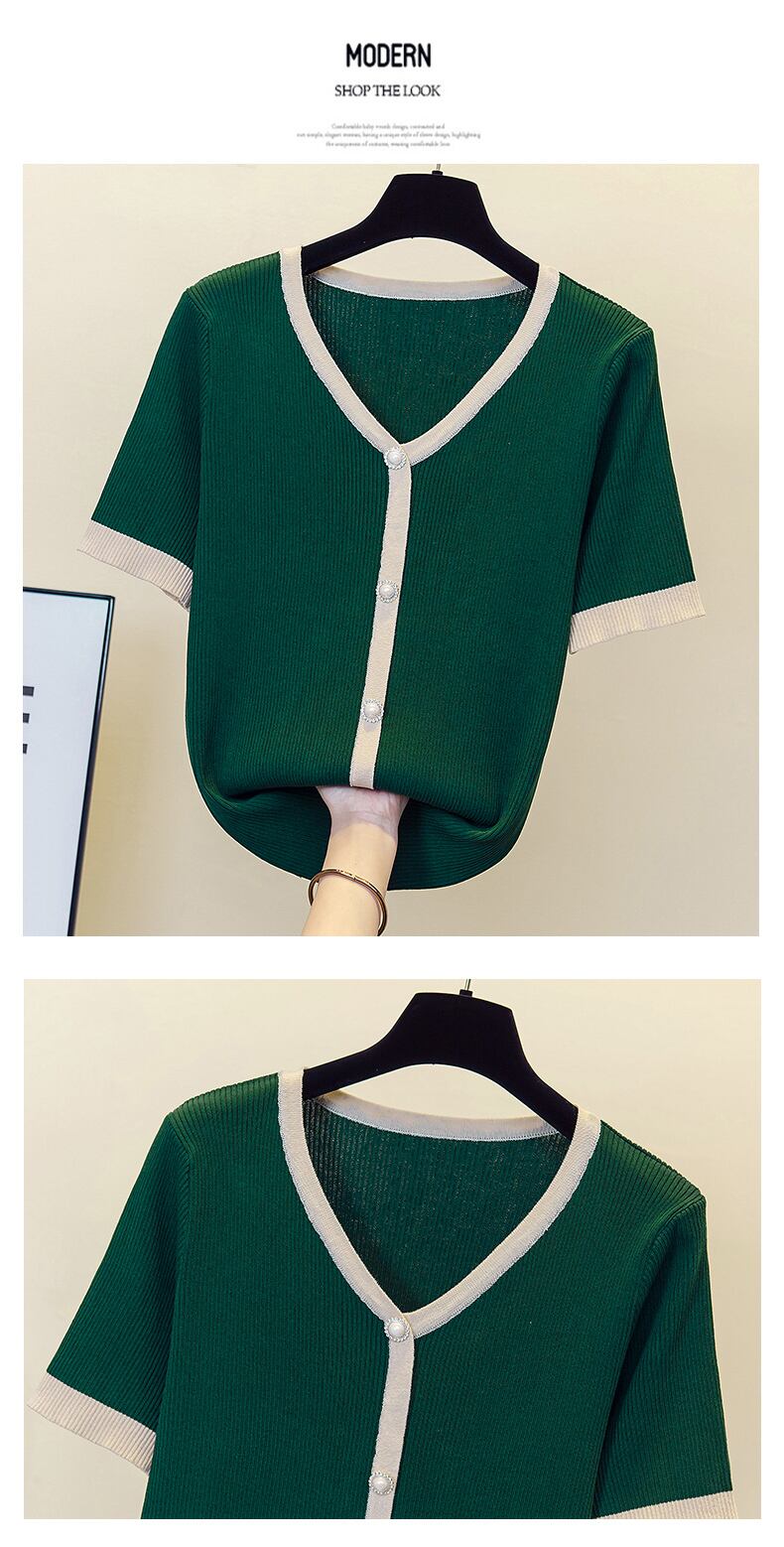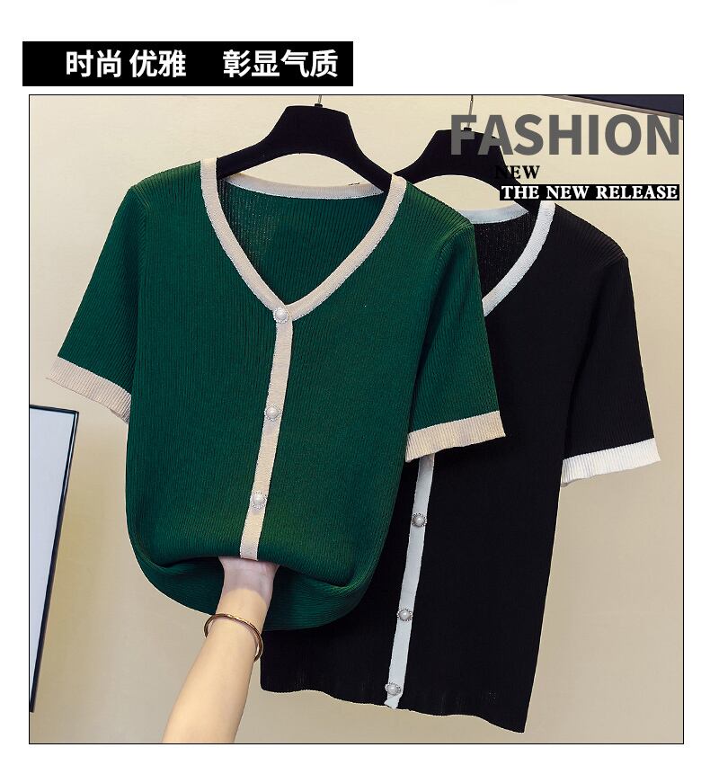 大きいサイズの婦人服 2023 夏の新しい太った姉妹配色 V ネックカバーリング肉オールマッチゆるいカジュアルな年齢を減らす Tシャツの女性 大きめサイズ サマー 夏物 Vネック 8884114659721800