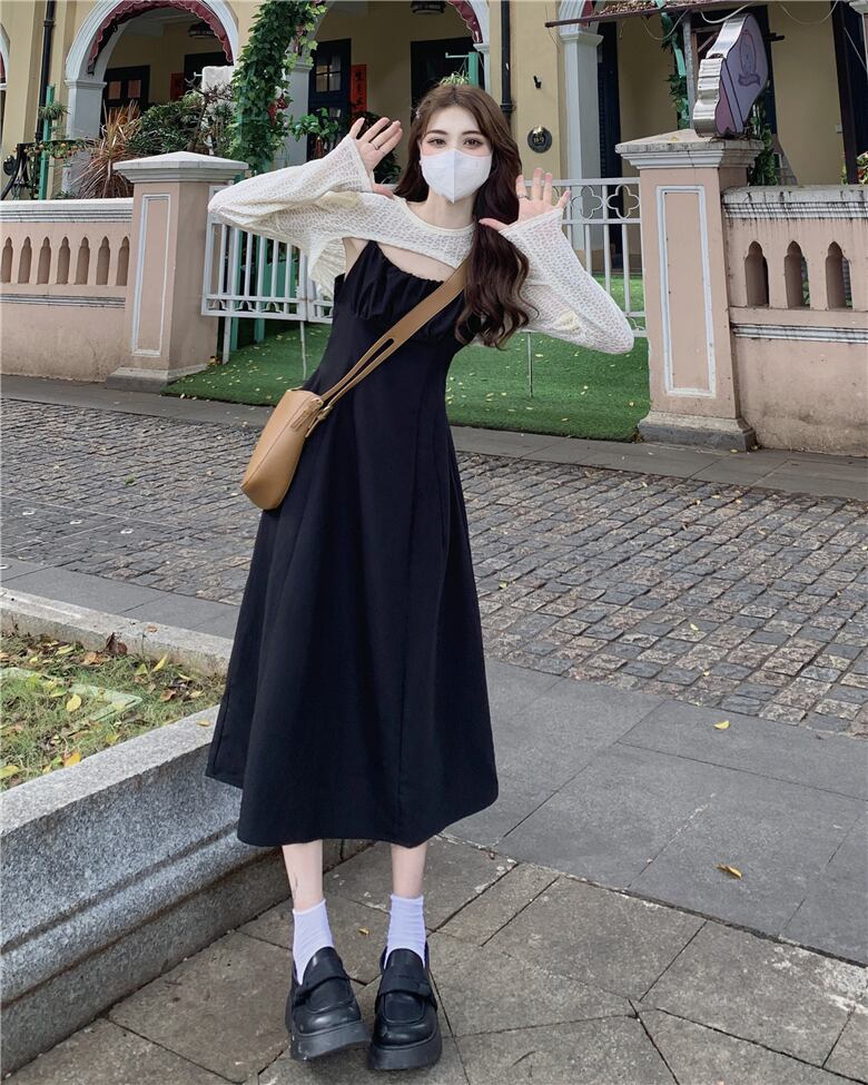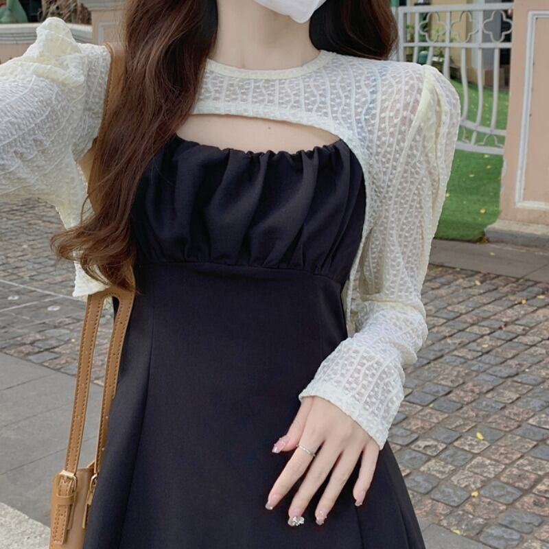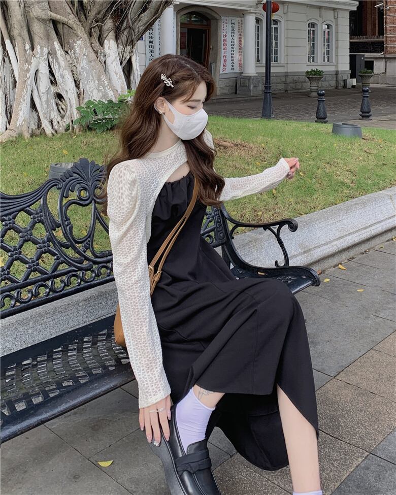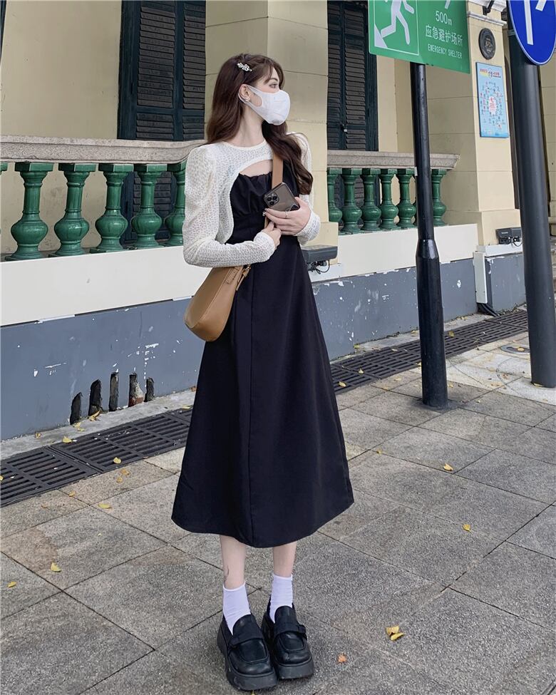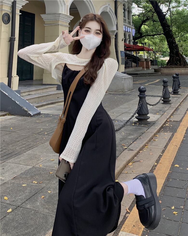 プラスサイズの婦人服 2023 春の新しいファットシスター年齢を減らすファッションジャケットフレンチウエストサスペンダースカート 2 点セット 大きめサイズ スプリング 春物 8884119936011429