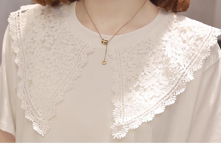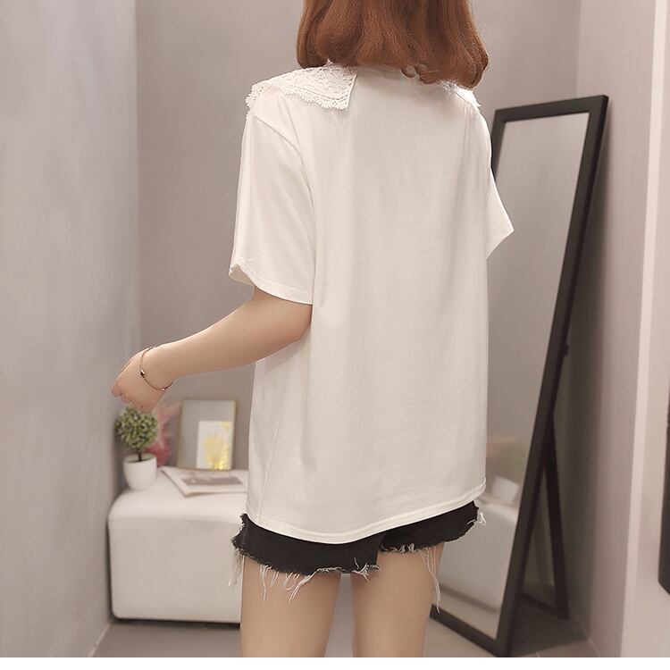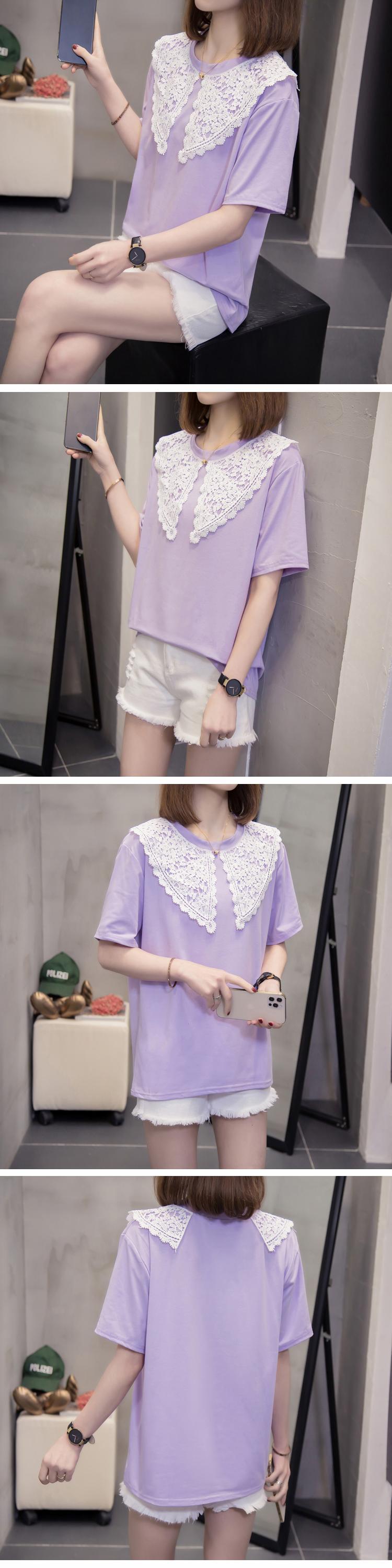 プラスサイズの婦人服 2023 夏の新しいファットシスター人形の襟のステッチ半袖薄いトップ気質ステッチ Tシャツ 大きめサイズ サマー 夏物 8884184794031743