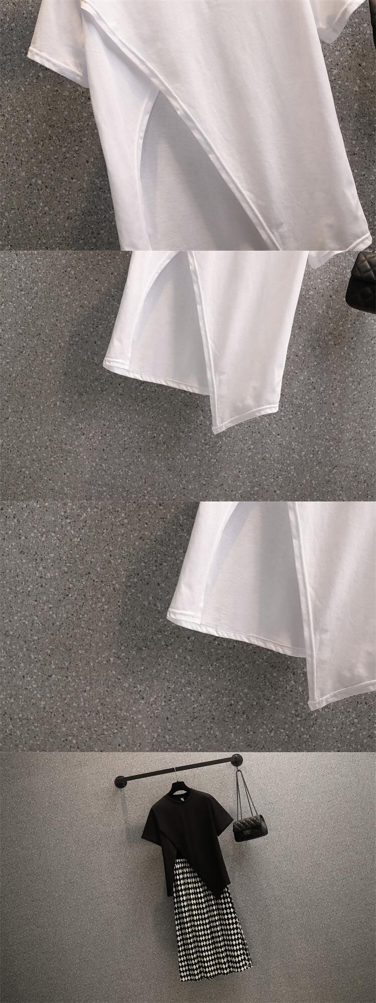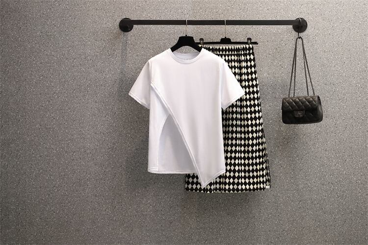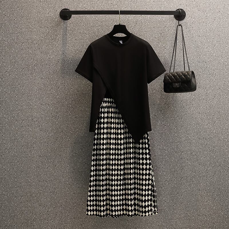 プラスサイズの婦人服 2023 夏の新しい脂肪姉妹スリット気質トップ ハイウエストヒップカバー スカート 2 点セット ハイウェスト 大きめサイズ サマー 夏物 8884181214078944