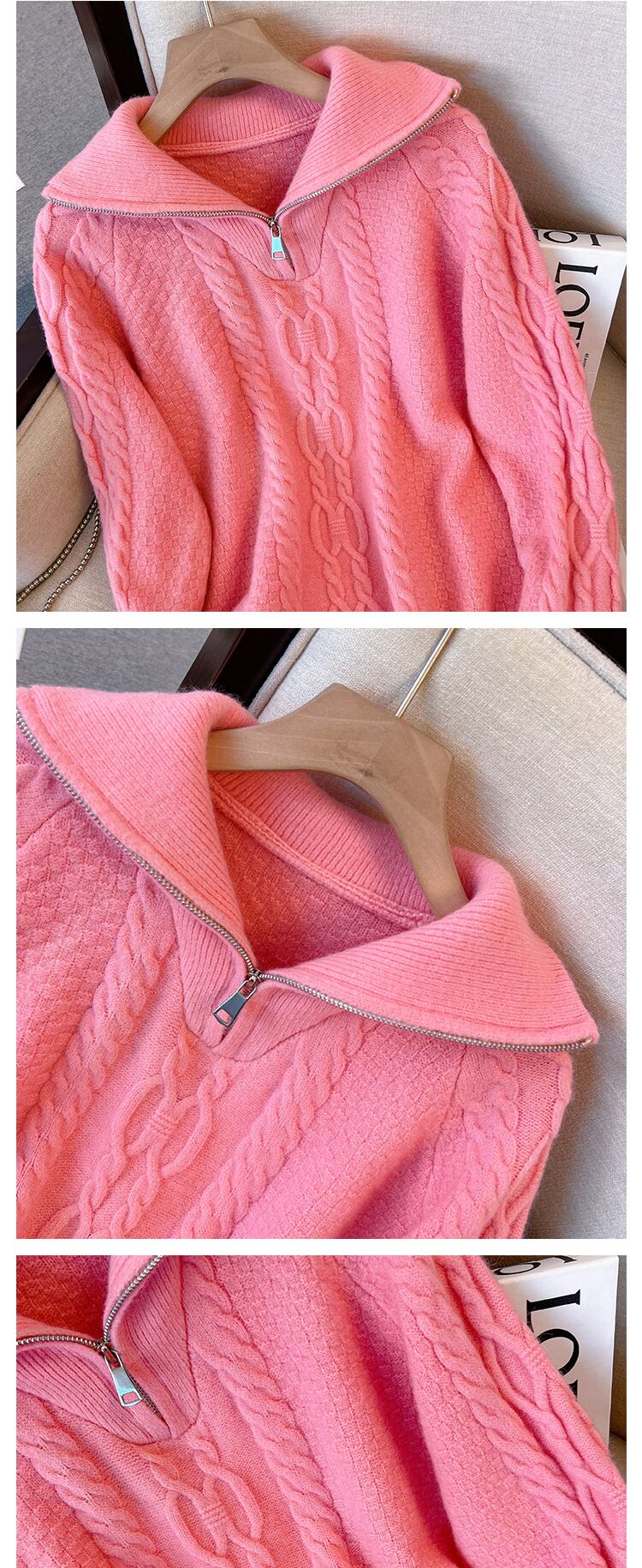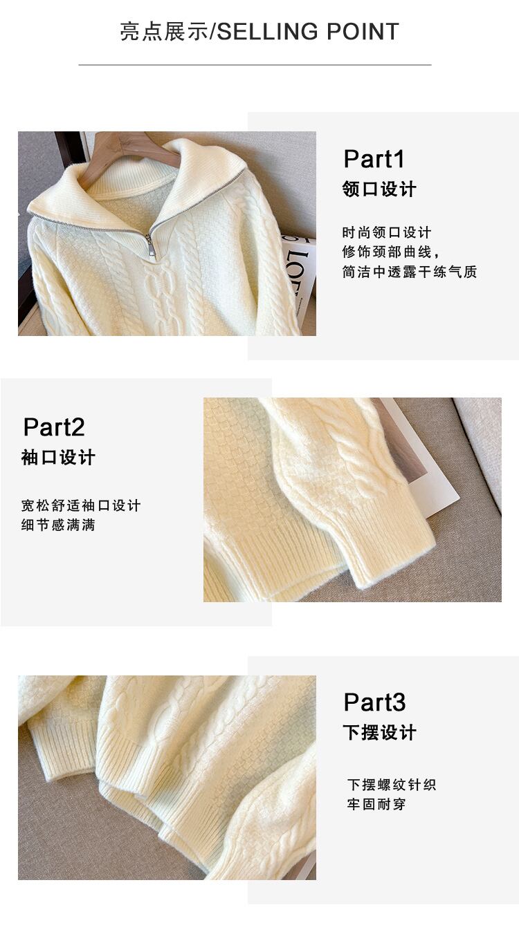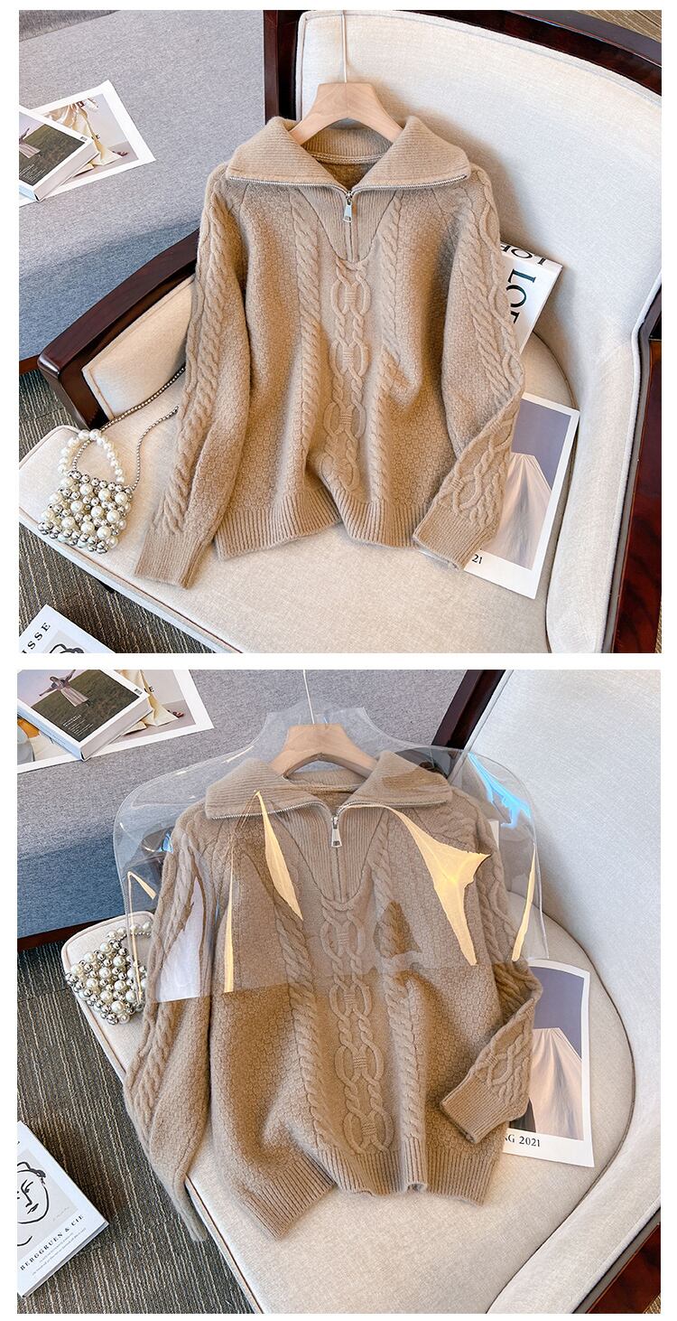 プラスサイズの婦人服2023春の新しいスタイルのファットシスターラペルカジュアルジッパーのデザイン感のある肉を覆う長袖のニットセーター ロング 大きめサイズ スプリング 春物 8884115691238981
