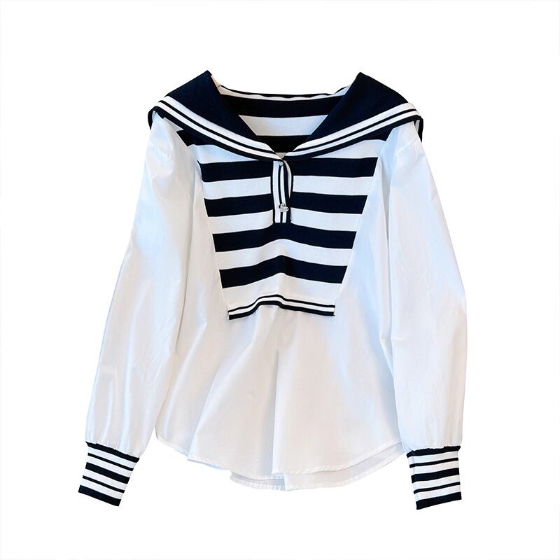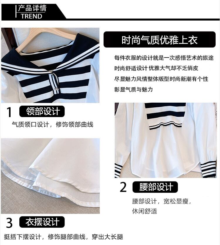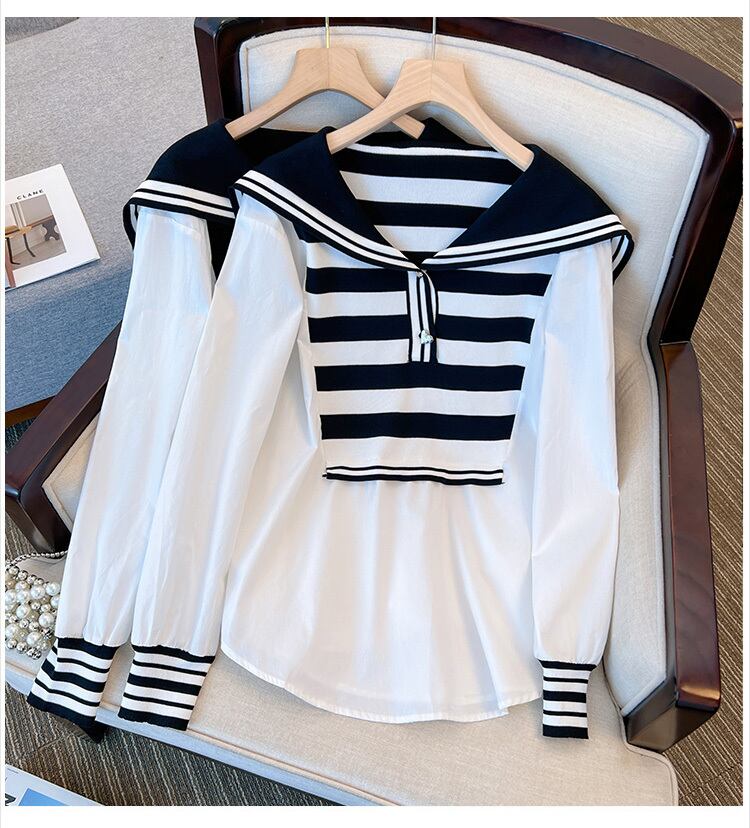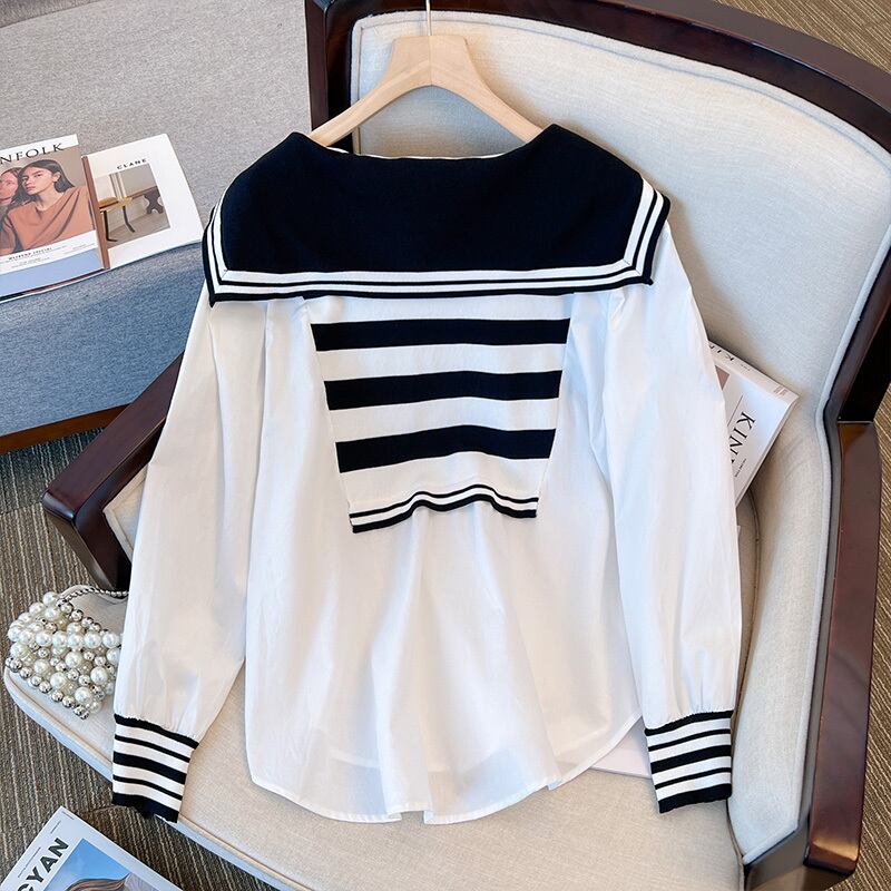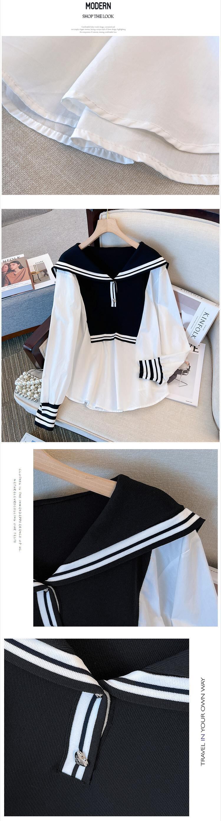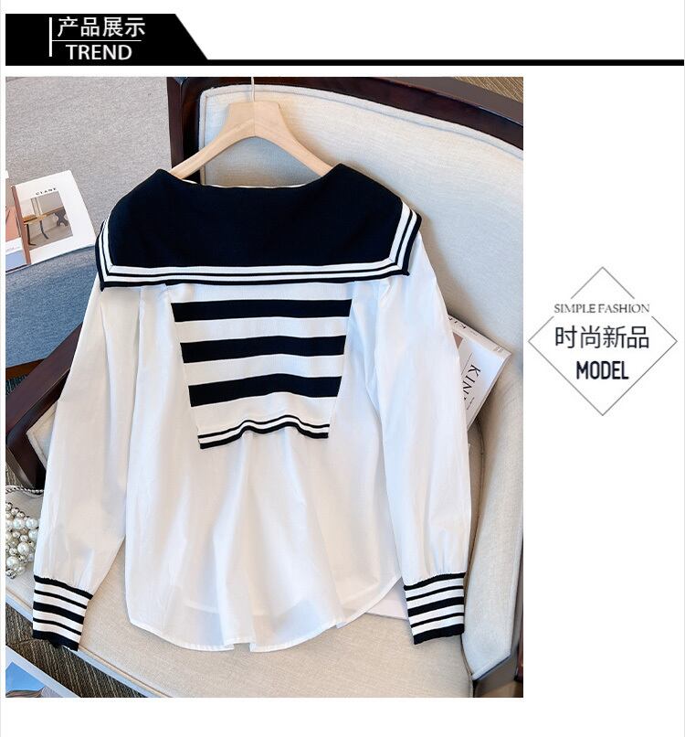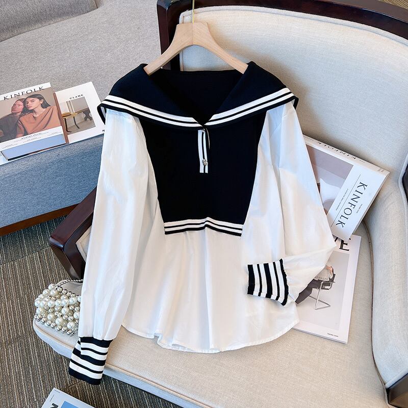 プラスサイズの婦人服 2023 ファットシスター春の新しいネイビーカラースプライシング年齢を減らす薄いトップデザインセンスシャツ女性 大きめサイズ スプリング 春物 8884188437252010