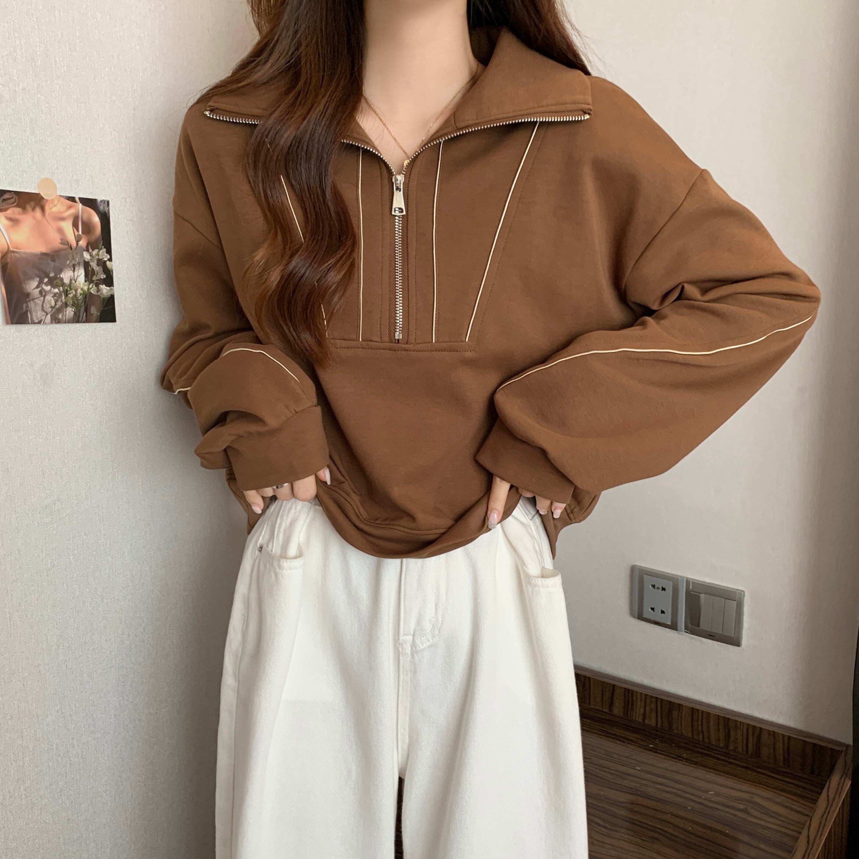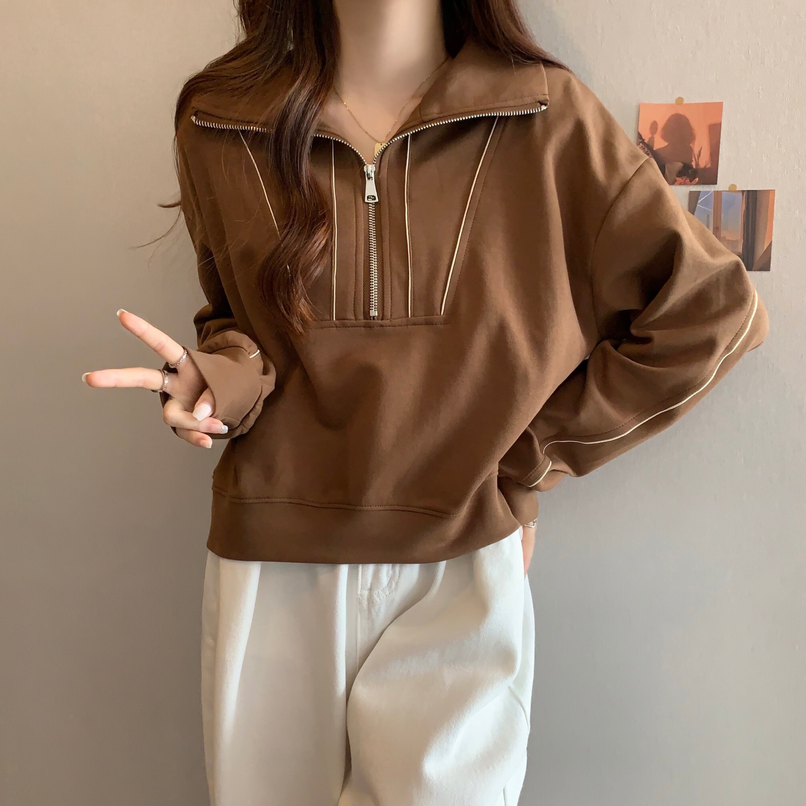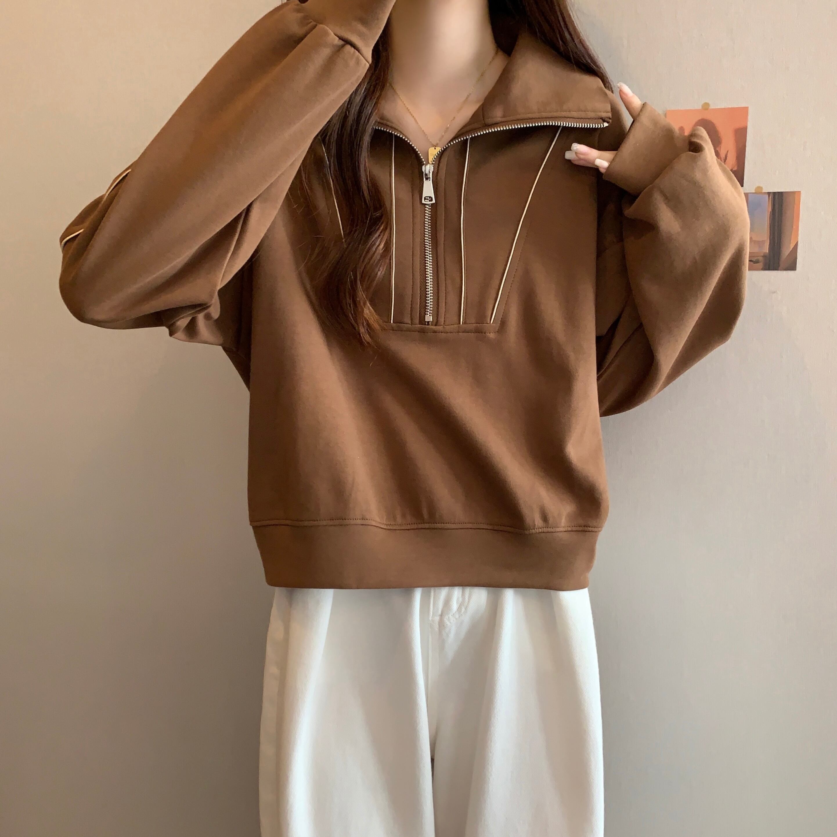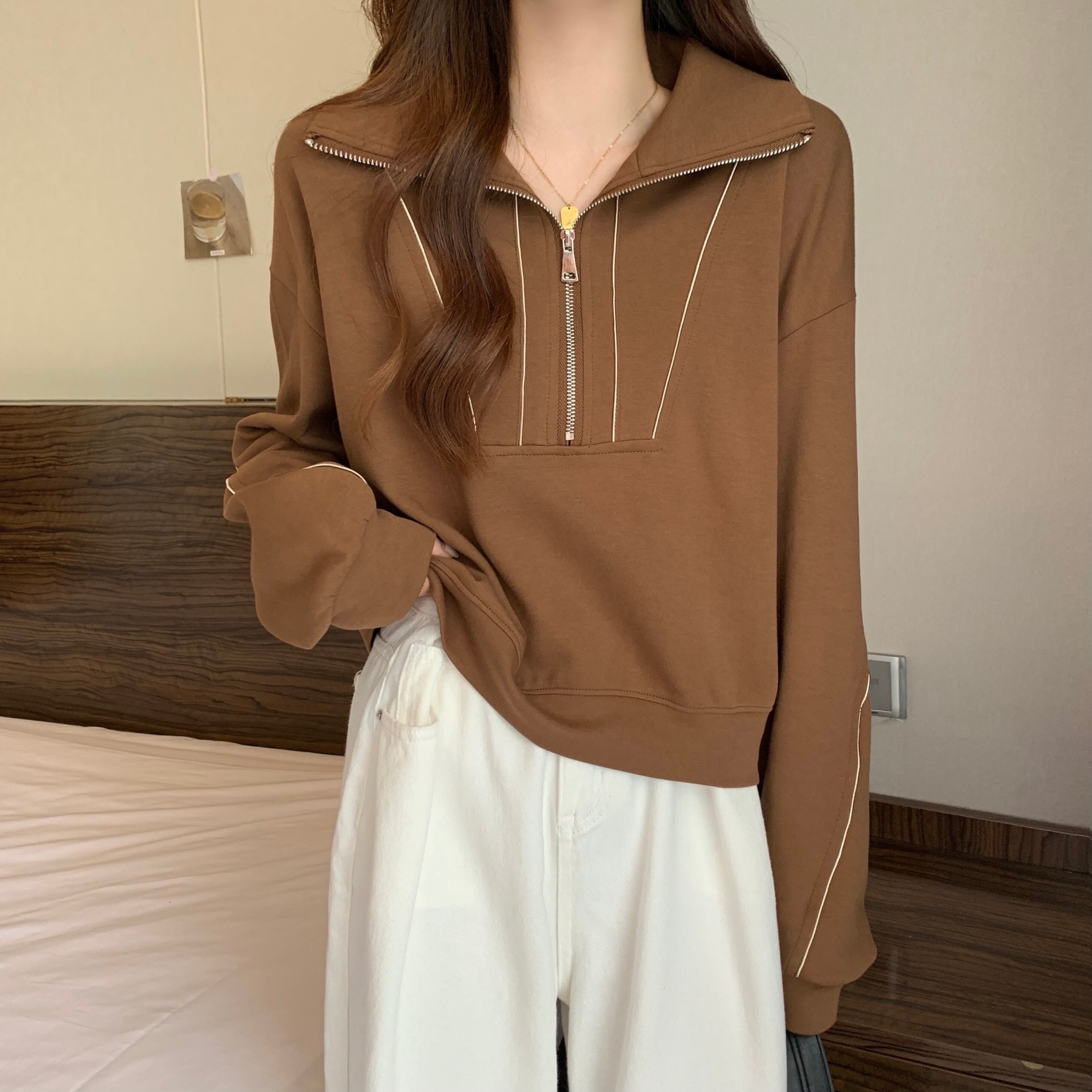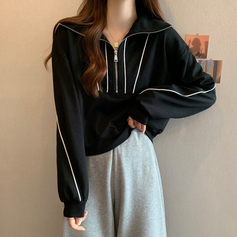 プラスサイズの婦人服 2023 トレンディな女性の春の新ファットシスター無地スタンドカラールーズスリムカジュアルハーフジッパーセーター女性 大きめサイズ スプリング 春物 ソリッドカラー 8884117833152092