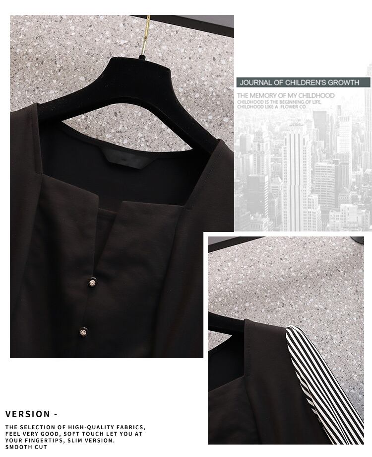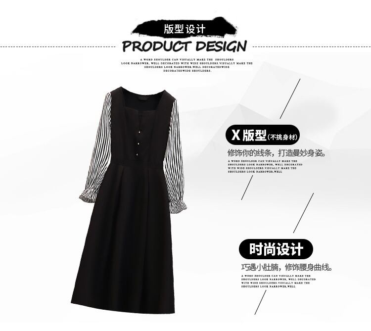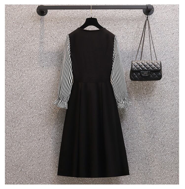 大きいサイズの婦人服 2023 春の新しいスタイルの太った姉妹のシックで薄い通勤スプライシング偽のツーピースの縞模様のドレス 大きめサイズ スプリング 春物 ストライプ 8884195156847964