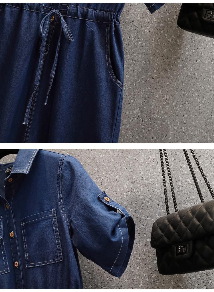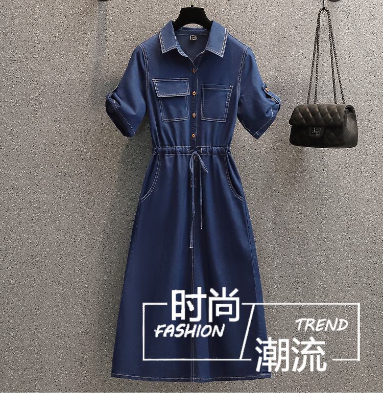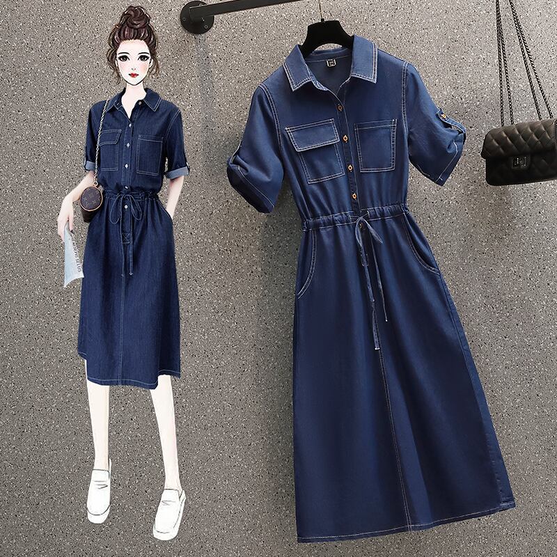 プラスサイズの婦人服 2023 夏の新しい太った姉妹年齢を減らすウエスト痩身フレンチ デザイン デニム ドレス 大きめサイズ サマー 夏物 8884188743443932
