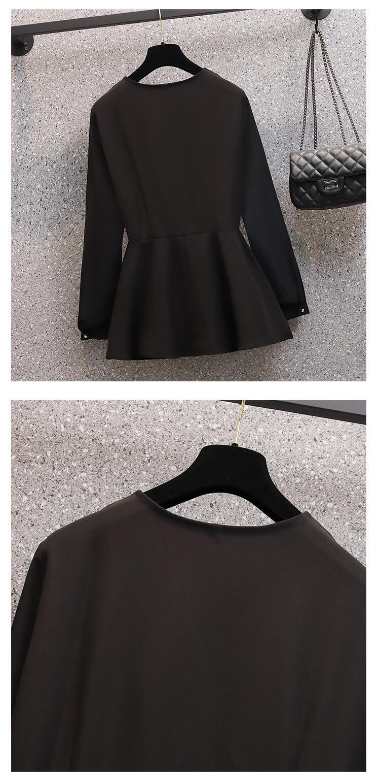大きいサイズ 婦人服 2023年 春 ファッション ヒップカバー ミート トレンド 通勤スタイル 薄手 無地 フロントショルダー 年齢対策 シャツ 大きめサイズ スプリング 春物 ソリッドカラー 8884157865897865