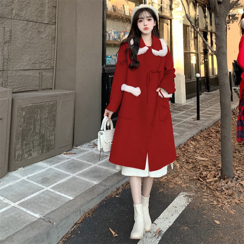 プラスサイズの婦人服 2023 春服脂肪姉妹新バージョンレトロ毛皮の襟ポケット厚いウールコートコート 大きめサイズ スプリング 春物 8884123155945355