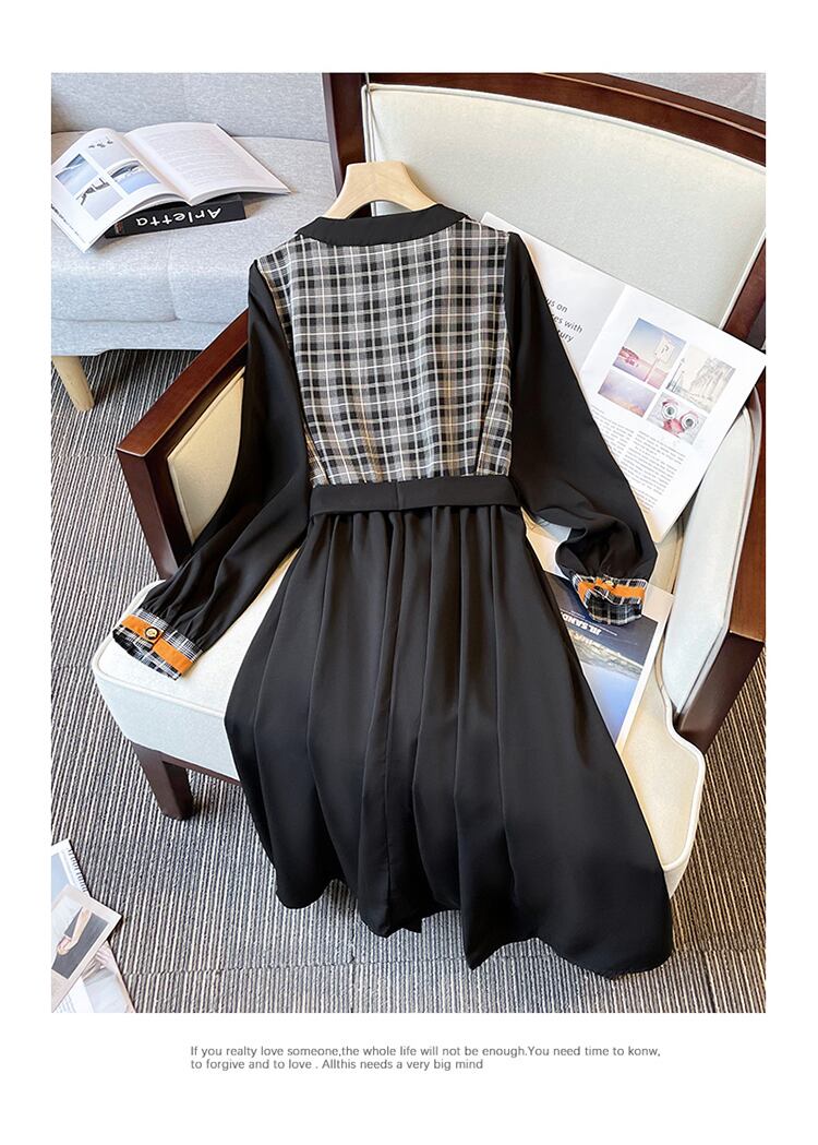 プラスサイズの婦人服 2023 春服脂肪姉妹新しいファッション緩い薄い気質スプライシング長袖ドレス女性 ロング 大きめサイズ スプリング 春物 8884174460039173