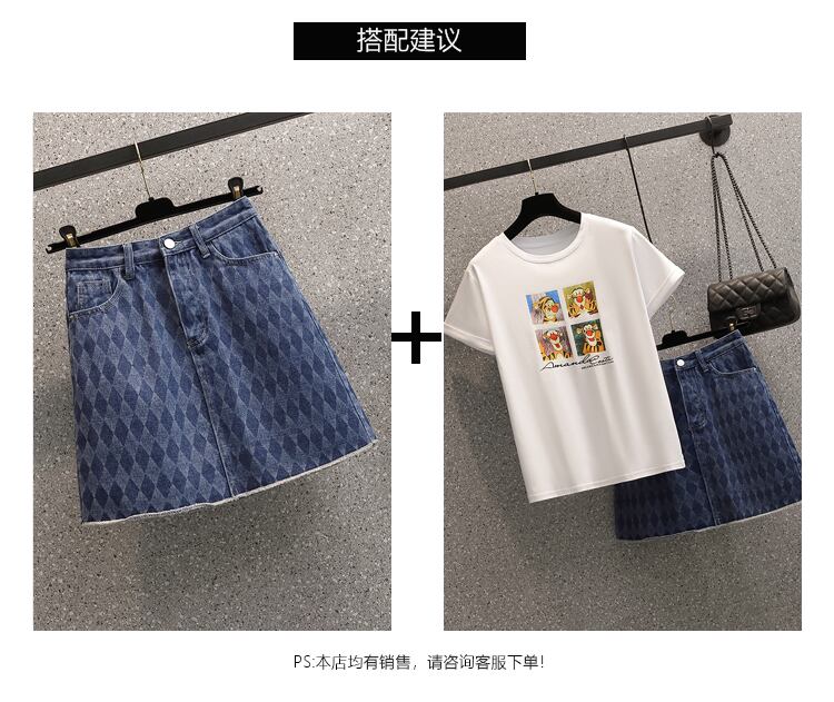 大きいサイズの婦人服 2023 トレンディな女性の春の新しい太った姉妹 A ライン ファッション菱形トレンディな洋風デニム スカート 大きめサイズ スプリング 春物 Aライン 8884139090323151