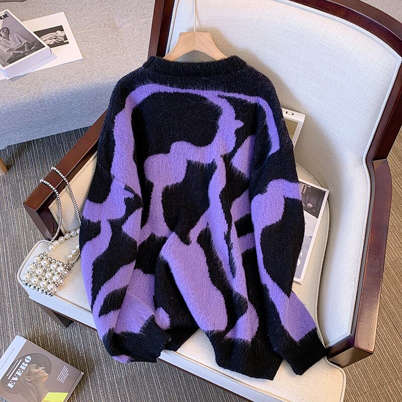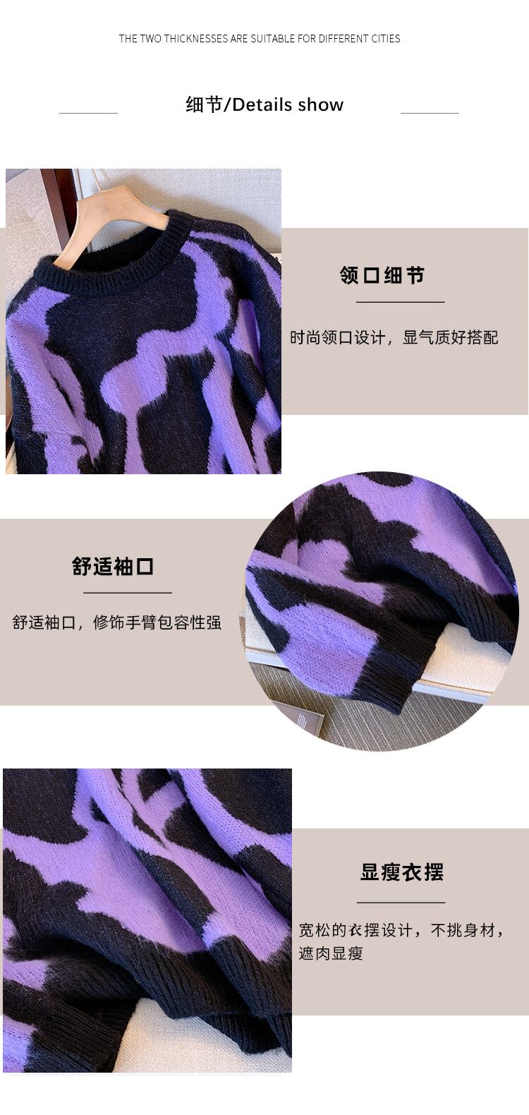 プラスサイズの婦人服 2023 春の新しいファットシスター年齢削減ルーズなデザイン感長袖ラウンドネックニットセーターの女性 ロング 大きめサイズ スプリング 春物 Oネック 8884110129858489