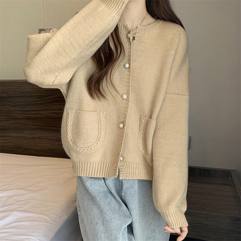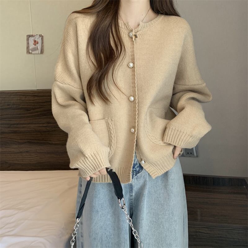 大きいサイズの婦人服2023春服ファットシスターズの新しいファッションルーズで薄いラウンドネックニットカーディガン長袖セーター ロング 大きめサイズ スプリング 春物 Oネック 8884122656605705