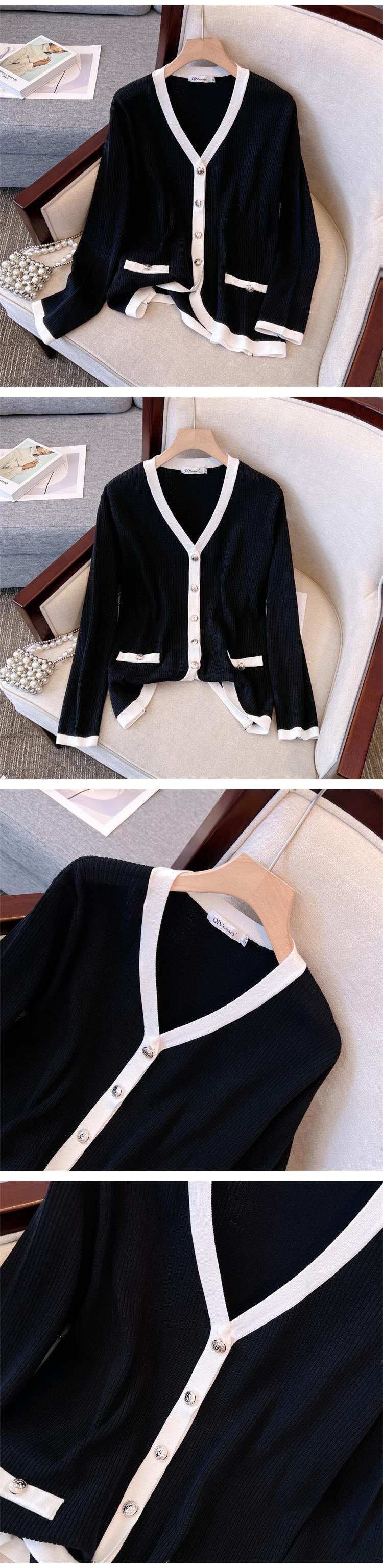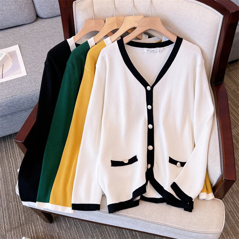 プラスサイズの婦人服 2023 ファットシスター春の新ファッション配色 V ネックゆったりと薄いニットカーディガントップ女性 大きめサイズ スプリング 春物 Vネック 888415844947023