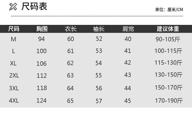 サイズ:M(90-105kg),L(105-115kg),XL(115~130斤),2XL(130-150kg),3XL(150-170kg),4XL(170-190kg)