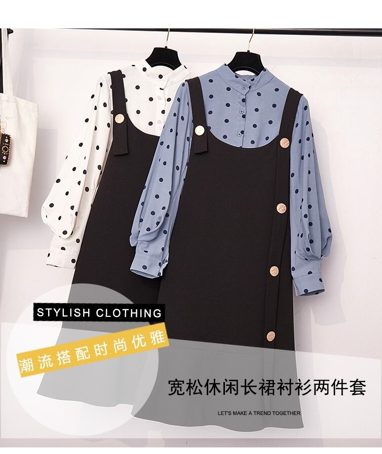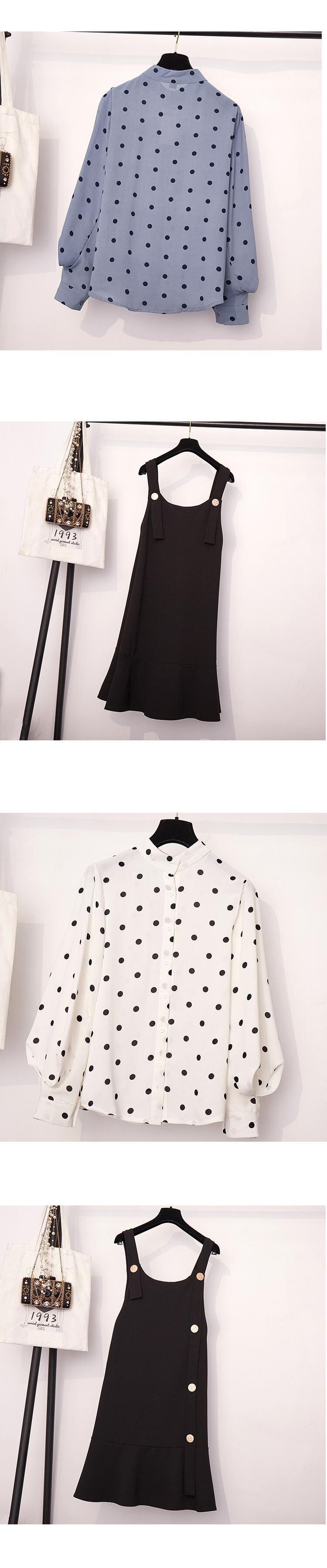 大きいサイズの婦人服2023年春服ファットシスターズ新しいeignスタイルの年齢を減らす薄いウェーブドットシャツストラップスカート2点セット 大きめサイズ スプリング 春物 888413042386802